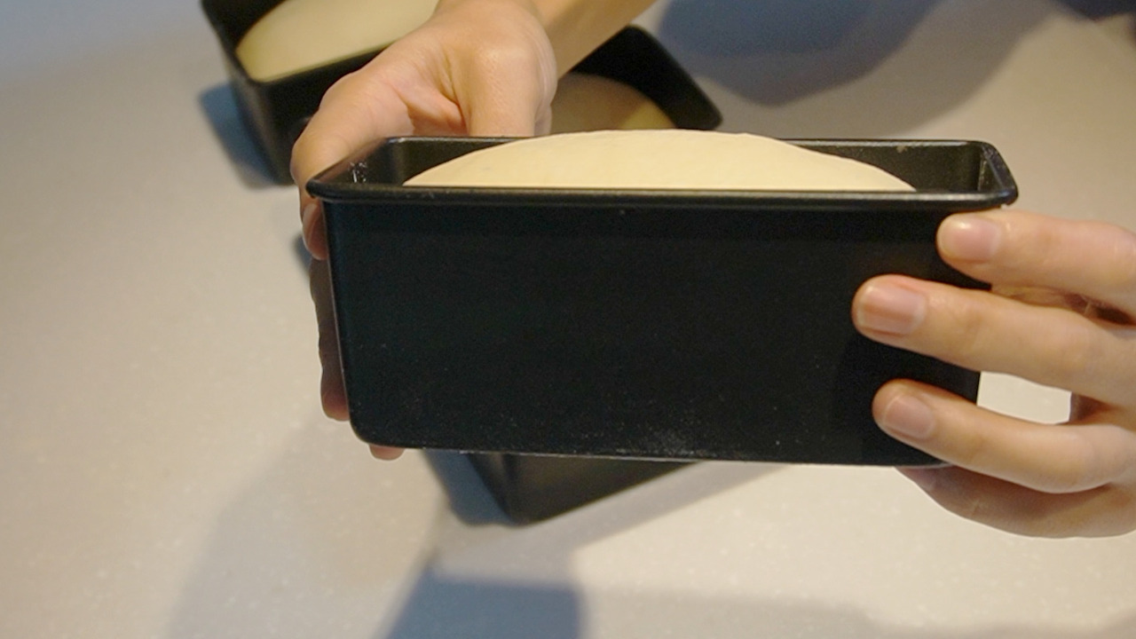 2차발효 완료시점은 손으로 눌러보거나 팬을 흔들어보거나 다양하지만, 식빵의 경우 정해진 틀로 굽는 경우가 대부분이므로 틀에서 어느정도 올라왔는지를 눈으로 익혀 정하는 방법이 편리하다.