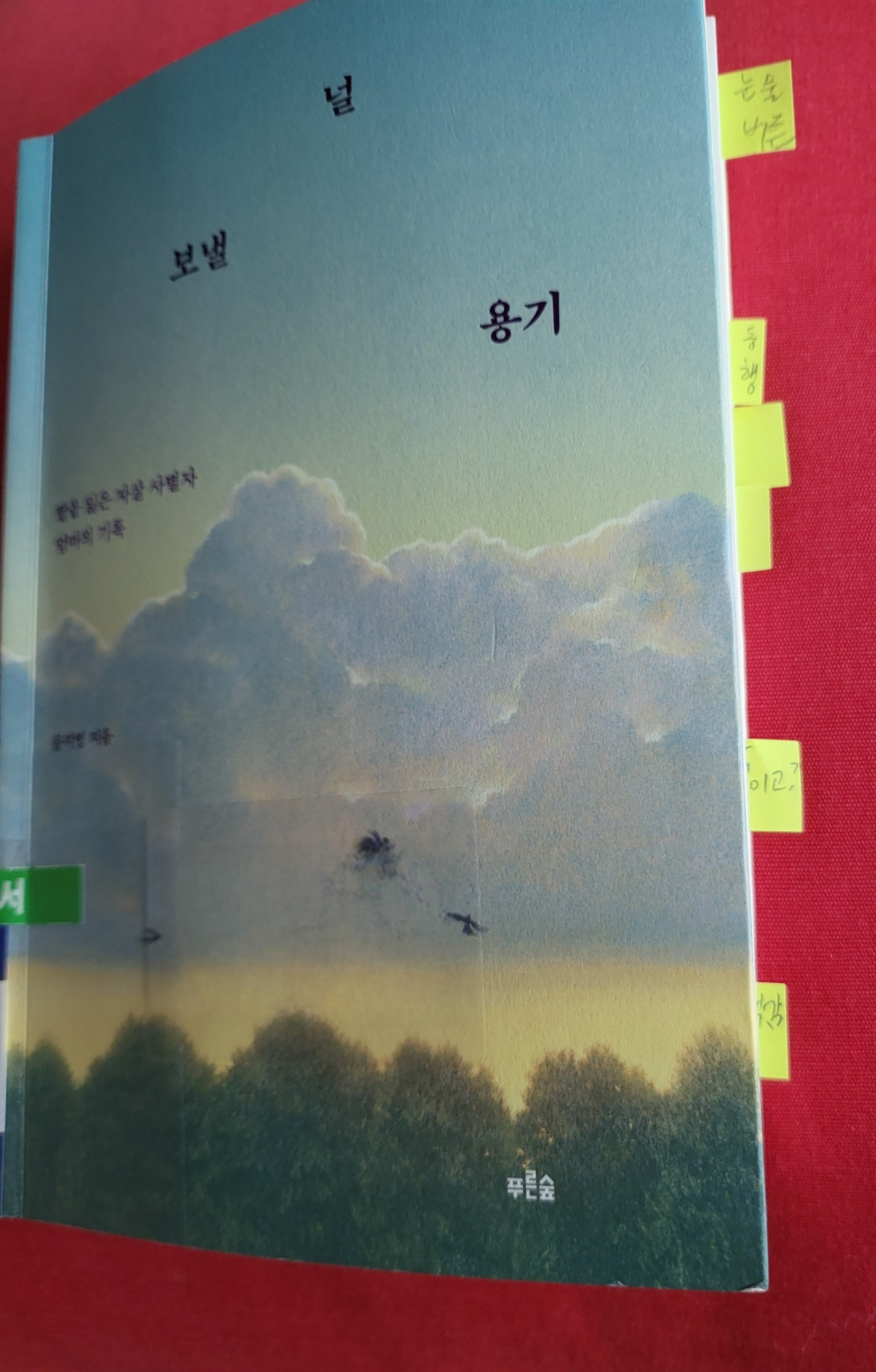 '딸을 잃은 자살 사별자 엄마의 기록'이라고 책 표지에 적혀있다. 신착 도서 매대에 이 책이 소리 없는 아우성으로 누워있는 듯했다. 표지를 열어볼 자신이 없었다. 책을 곁에 가져다 두긴 했지만, 책을 열면 종이가 작가의 눈물로 흠뻑 젖어 있을 것만 같았다. 그래도 작가의 용기에 포개어 이 책을 천천히 읽기로 했다.