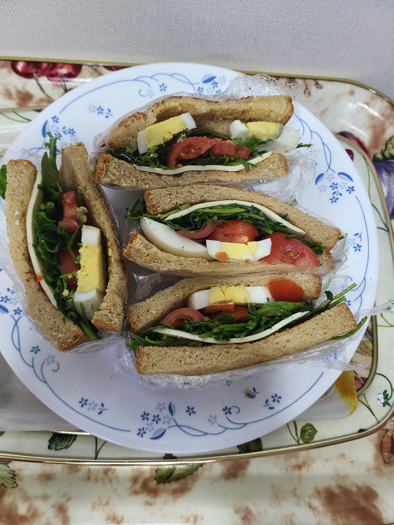 재료를 다 올린 후에, 구운 식빵으로 덮은 후에 랩으로 단단히 싼다.