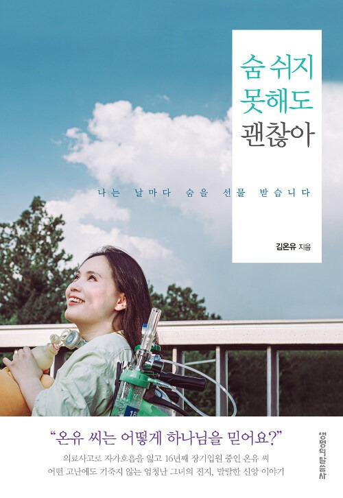 이 책이 출간되고 한참 후에 내가 읽었으니 그녀의 근황이 몹시 궁금했다. 책 발간 이후에도 여전히 자가 호흡을 할 수 없는지? 별 일 없이 안녕한지? 그 이후에 어떤 일들이 있었는지? 그래서 검색해 보니 온유 씨는 여전히 씩씩하게 살고 있었다. 그런 온유 씨를 보니, 사소한 것에 불평하고 만족하지 못했던 나 자신이 복에 겨웠구나, 하는 생각에 부끄러워졌다. 나 스스로 숨을 쉴 수 있다면 그것 하나만으로도 무한 감사할 일이다.