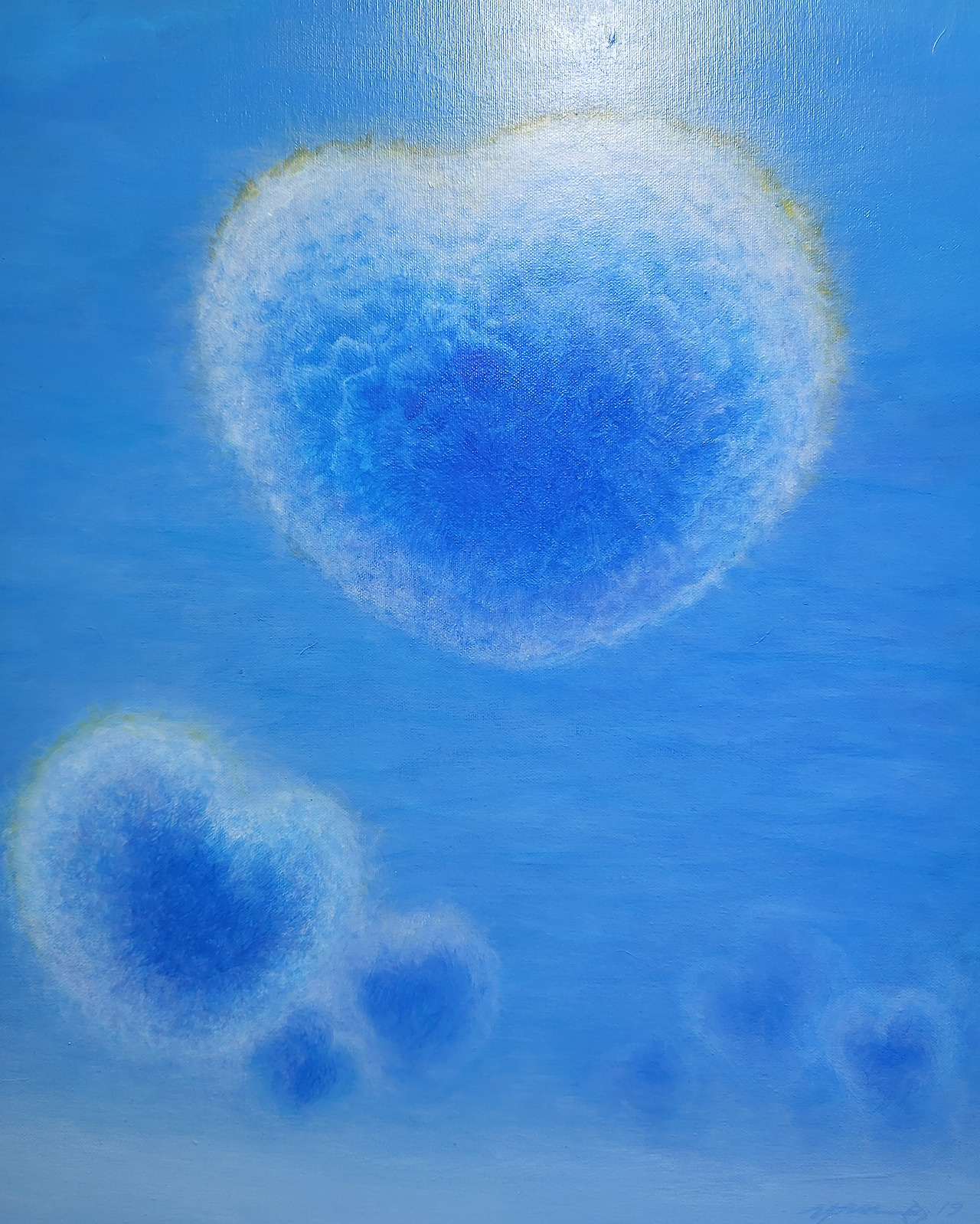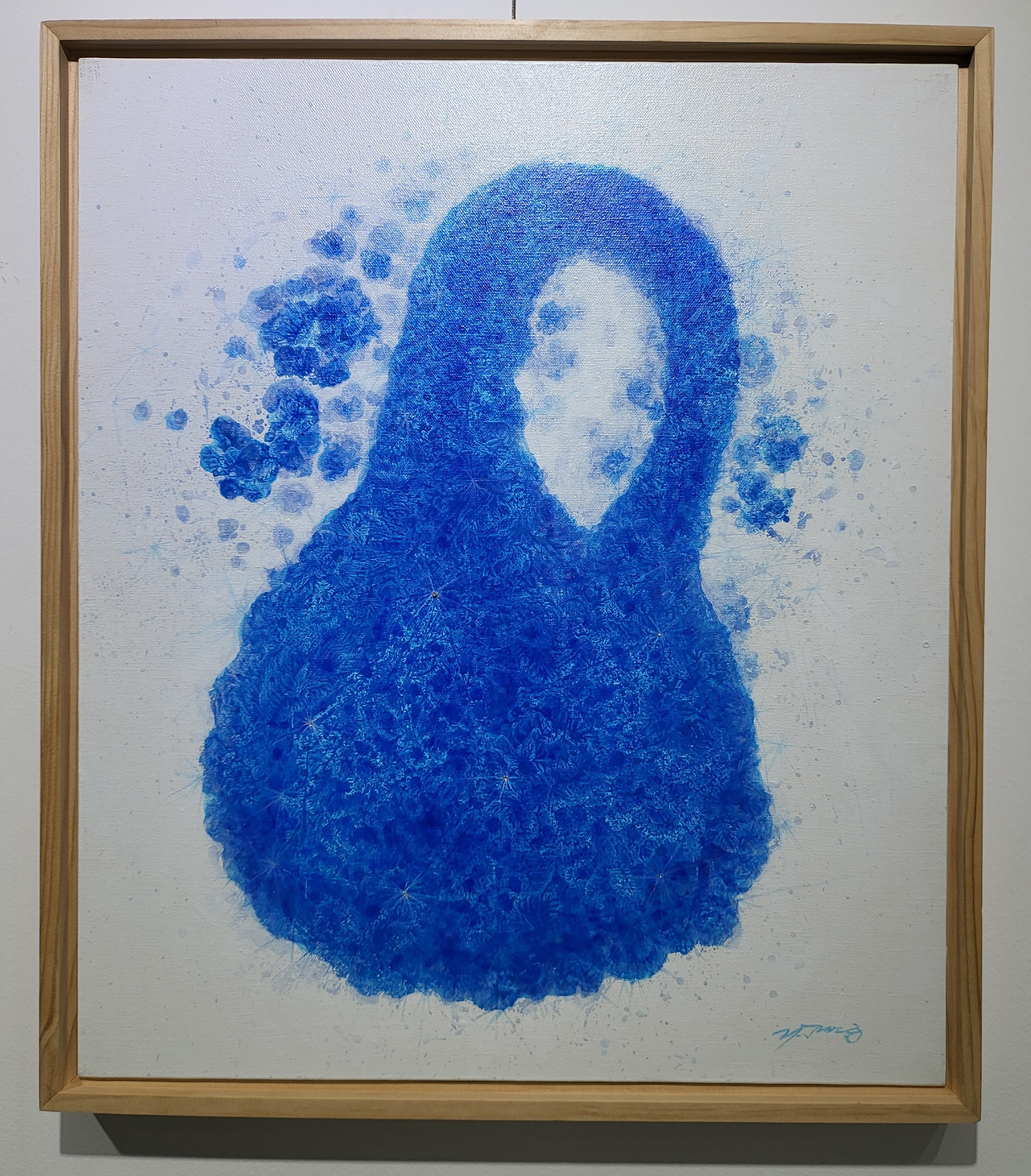[개인적으로 가장 애착이 갔던 그림, 파란색 위에 아지랑이처럼 떠오르는 희망을 보았기 때문이다]