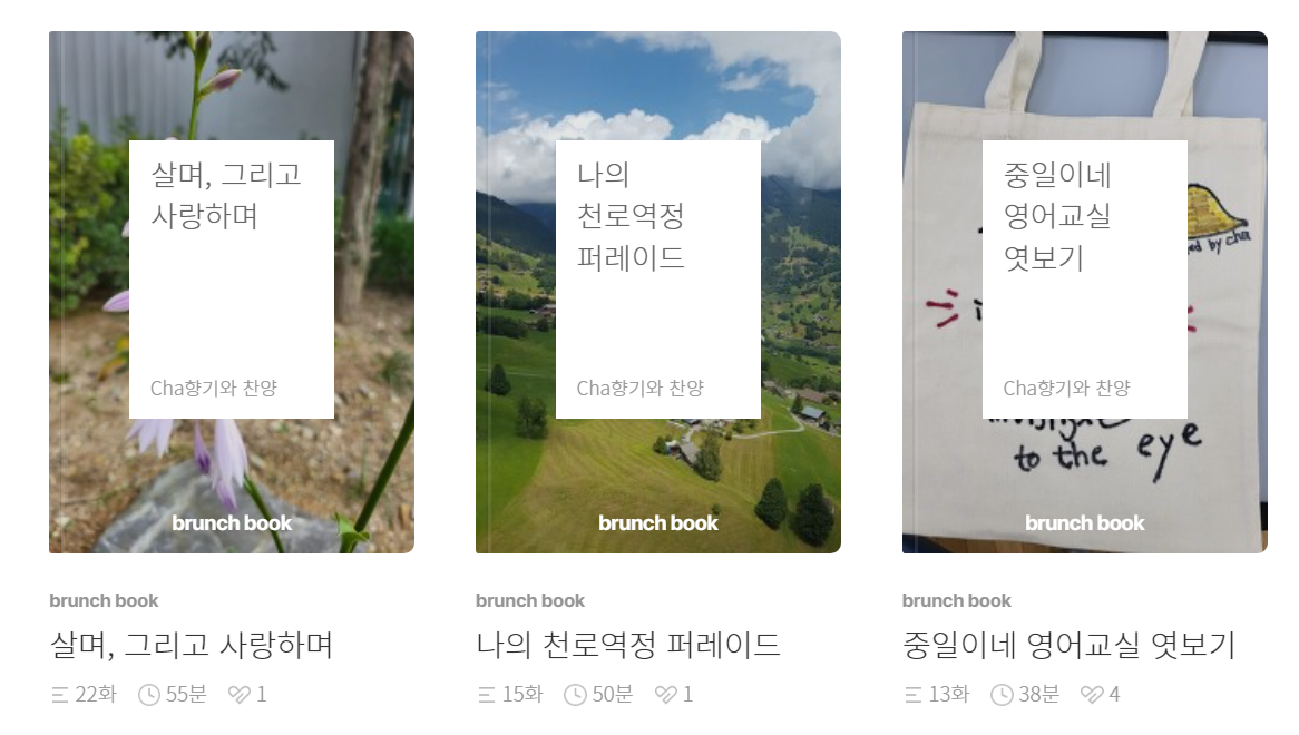 이렇게 글을 적어 나가다 보면 출간이나 또 다른 방식으로 세상과 만나게 될 것 같다. 설령 그런 날이 오지 않는다 하더라도 브런치 특급 열차에 오른 것만으로 행복에 겹고 만족스럽다.
