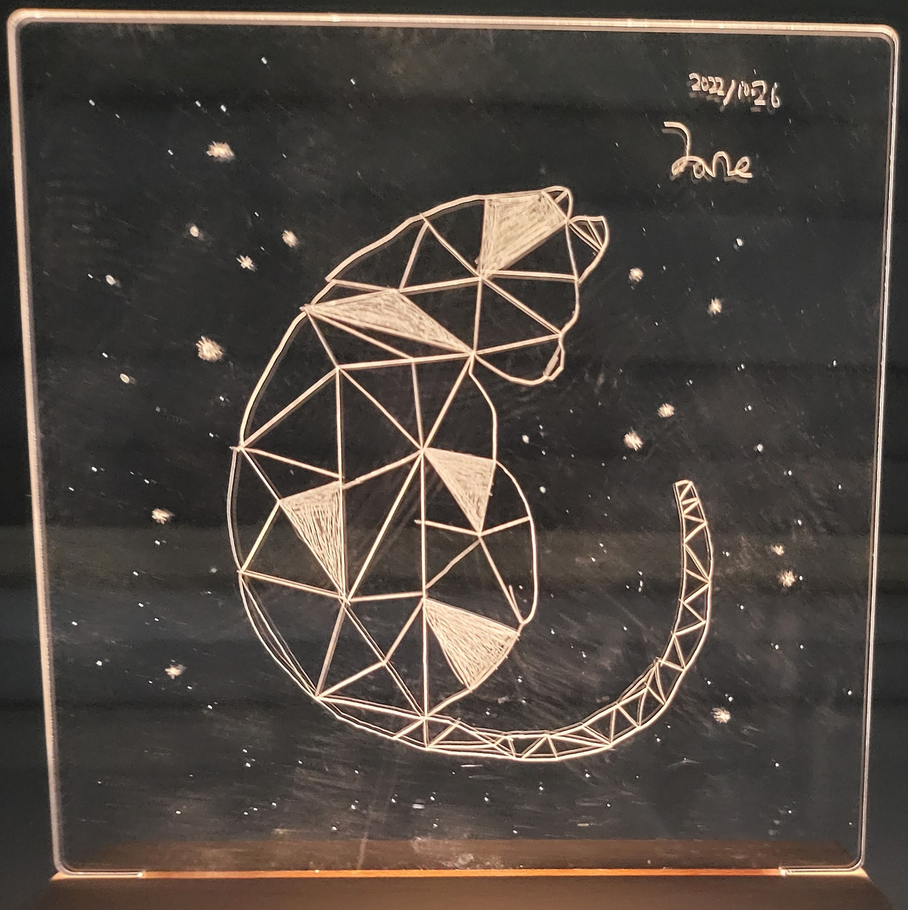 도서관 이벤트 활동에서 직접 아크릴을 조각하여 만든 무드등이었다.