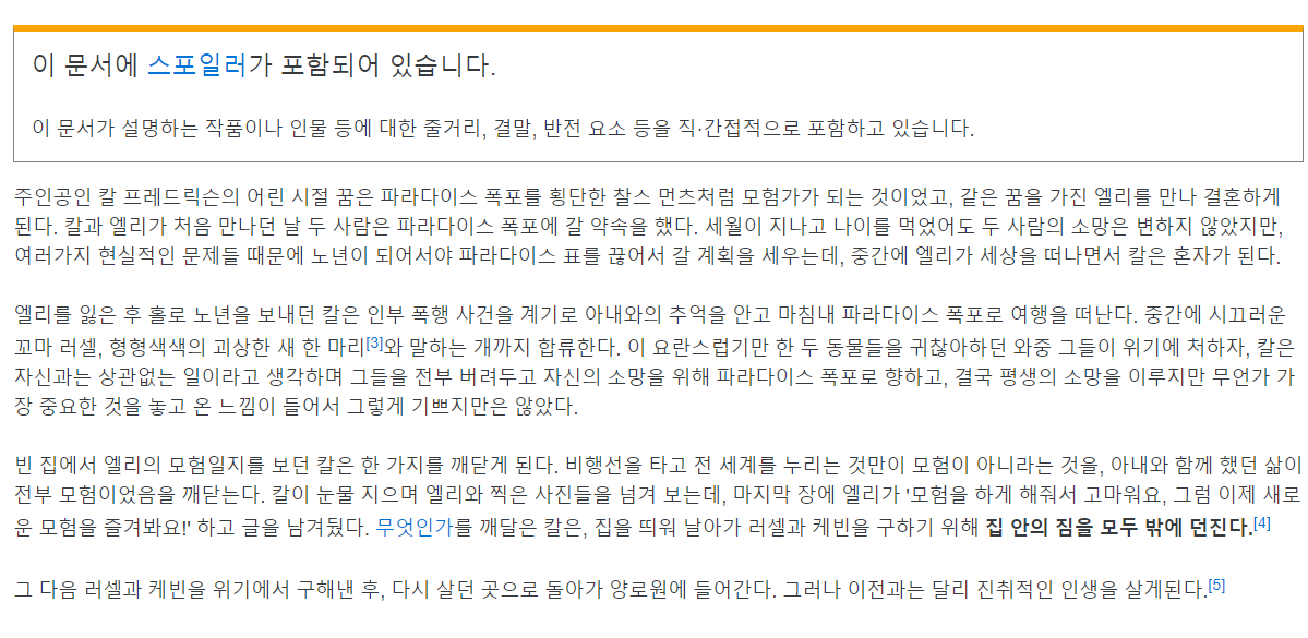창체 동아리(스크린 English) 시간에 학생들과 디즈니와 픽사가 함께 제작한 3D 디지털 영화, <UP>을 보았다. 줄거리는 [나무위키]에서 캡처했다.