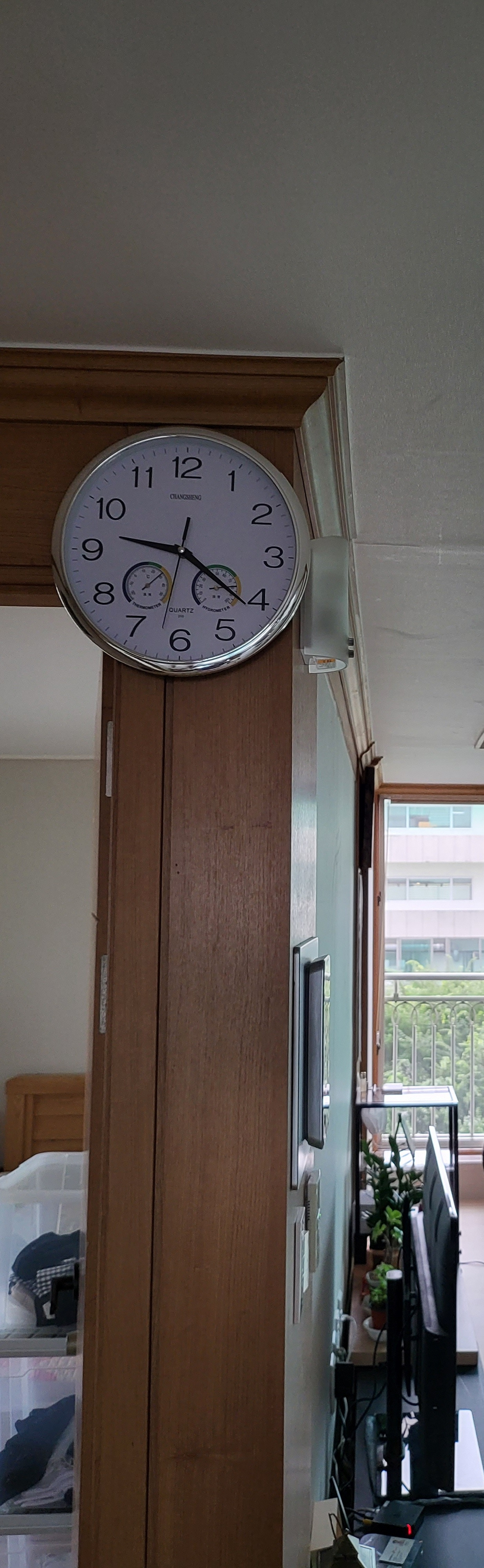 이럴 때 전동 드라이버가 있으면 좋았을 텐데... 하염없이 나사못을 돌렸다. 나사못을 죄었다. 잘 들어가고 있었다. 땀이 줄줄 흘렀다. 드디어 거울이 제대로 안성맞춤으로 달렸다. 덤으로 벽시계도 안방 문설주에 달았다.