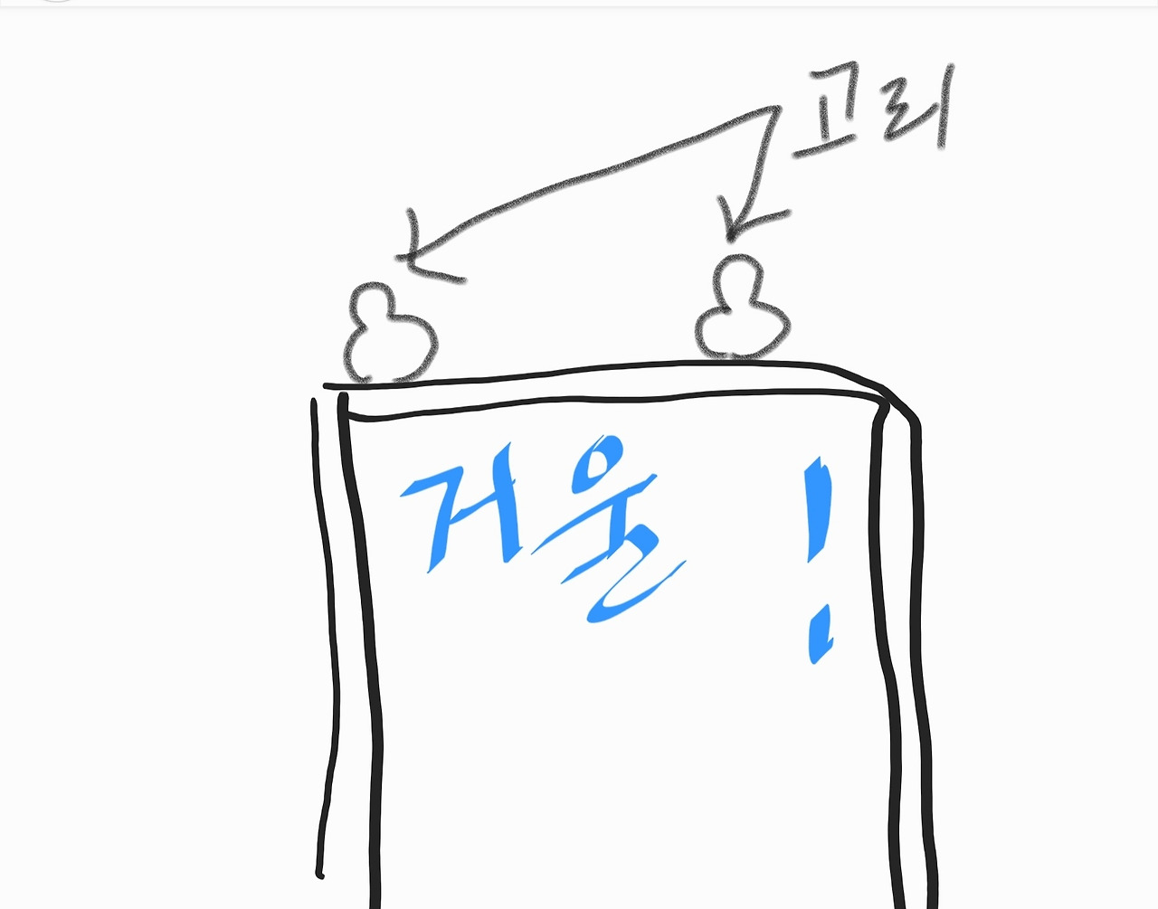 [거울의 고리에 나사못을 먼저 끼운 후에 벽에 박아야 한다./ 집안에서 일할 때 없어서는 안되는 나의 최애 스툴의자]