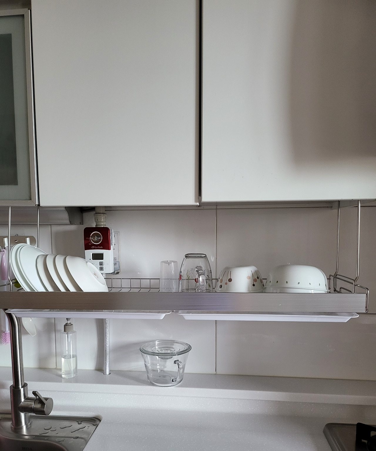 남편은 혹시나 하고 설거지 선반이 안전하게 잘 부착되었는지 이리저리 체크를 해보고 있었다.