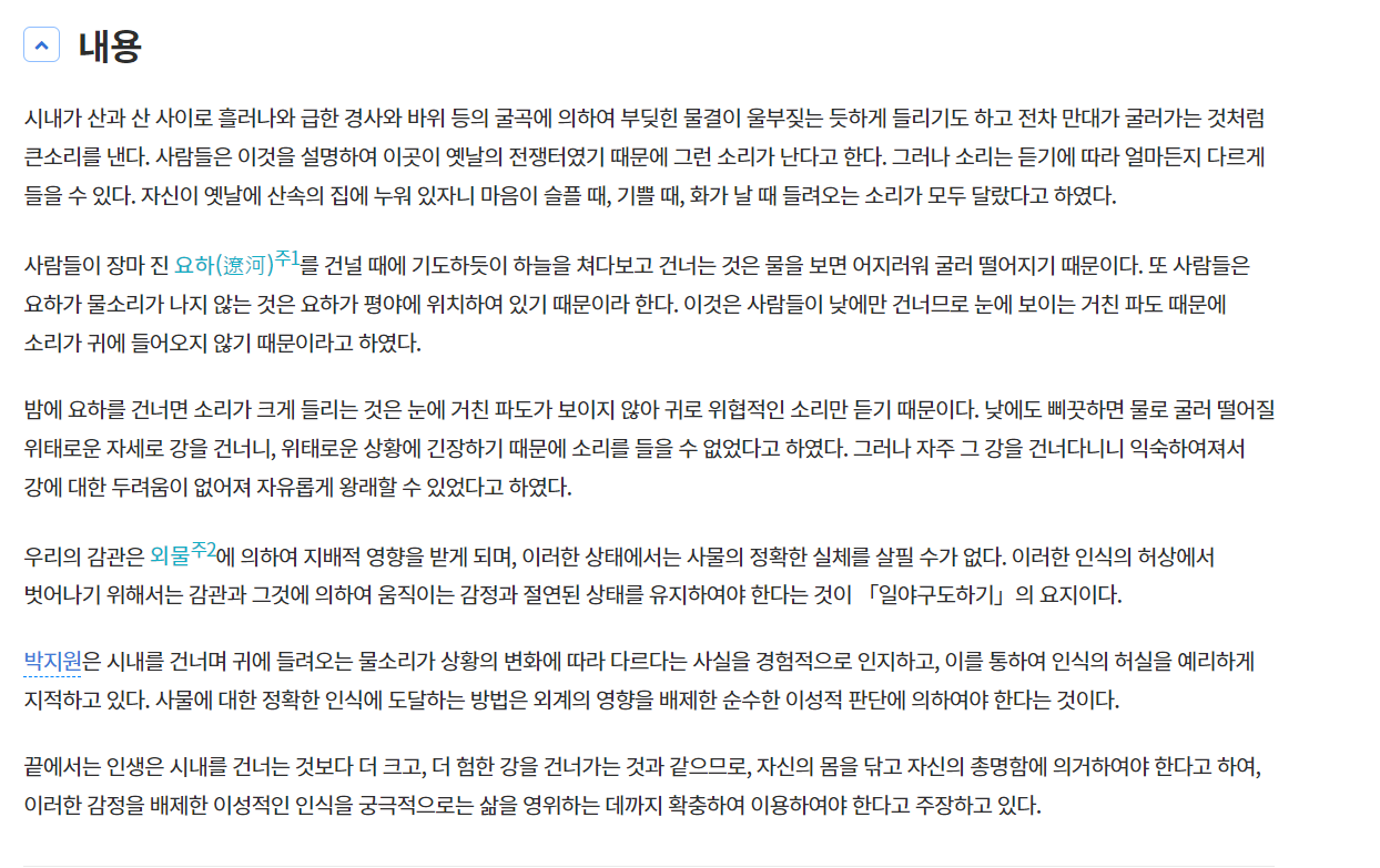 [한국 민족문화 대백과 사전- 일야구도하기 내용]