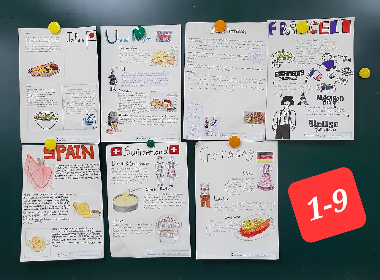Hyub과 Seo는 자신들은 활동지를 완성하는 일을 하고 발표일에는 100% Bin과 Bum이 할 수 있도록 콘티를 짰다. 얼마나 가르치고 연습을 시켰는지 부진아 Bin과 Bum이 발표를 무사히 잘 해냈다. Bin과 Bum의 인생에서 이런 기회가 또 있을까? 친구들 앞에서 당당하게 한 나라의 전통의상과 음식에 대해 영어로 유창하게 설명했던 중1 영어 수행평가 시간이 그들에게 큰 용기가 됐을 것이다. 친구를 세워주고 빛나게 했던 Hyub과 Seo를 업어주고 싶었다. 짜식들 참 멋져.