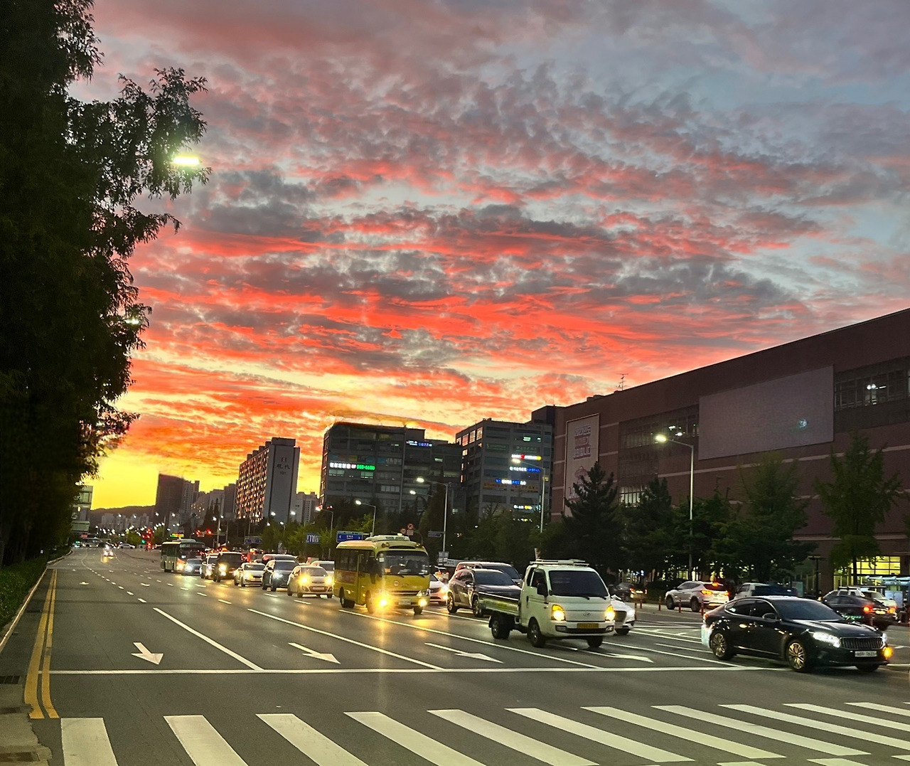 "자전거 타고 집에 가다가 하늘이 멋있어서 한 컷 찍어서 학급 단톡방에 올렸더라구요."