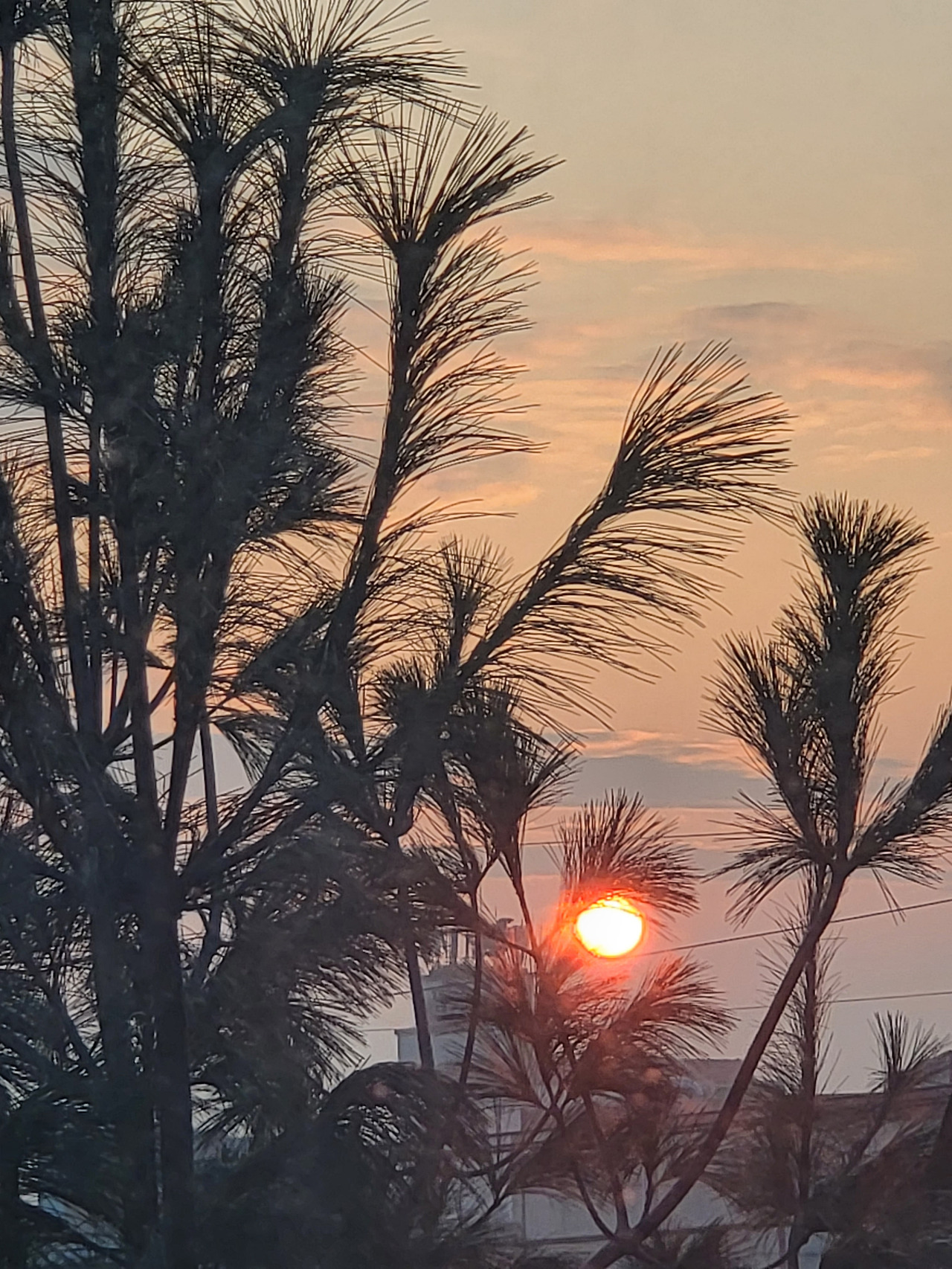 그런 후에 그 시간에 계속 동쪽 창을 내다봤다. 날씨앱에서 예고한 시간보다 10여분 늦게 해가 떠올랐다. 마침내 해돋이가 시작됐다. 사진을 여러 컷 찍었다. 방~콕~ 해맞이도 충분히 감개무량했다.