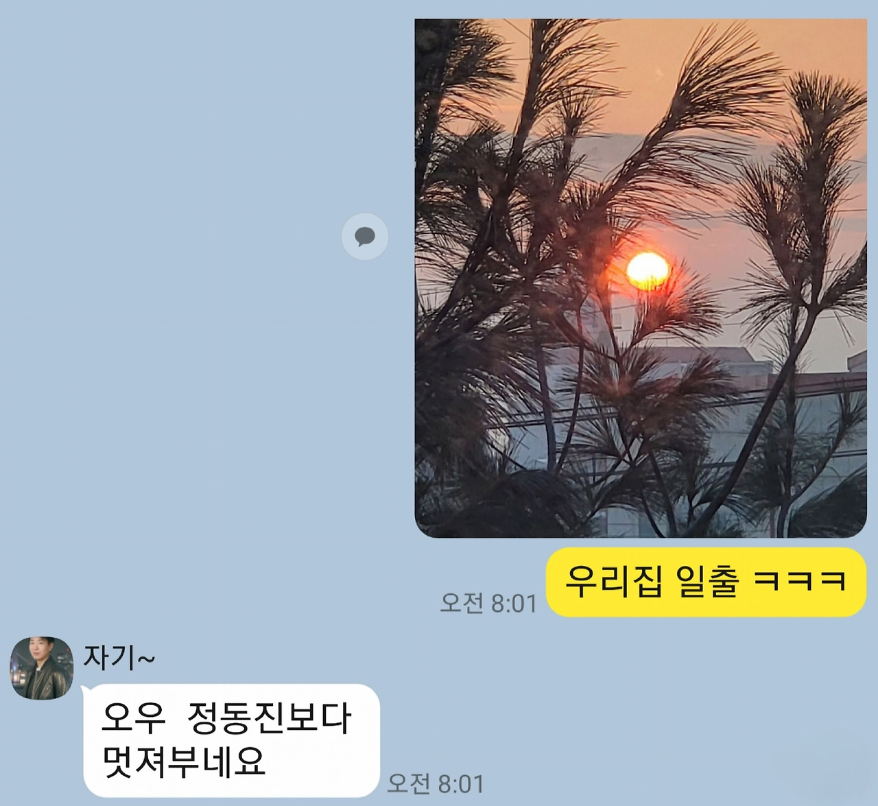 남편에게 일출 장면을 보냈더니, 답장을 보내왔다.