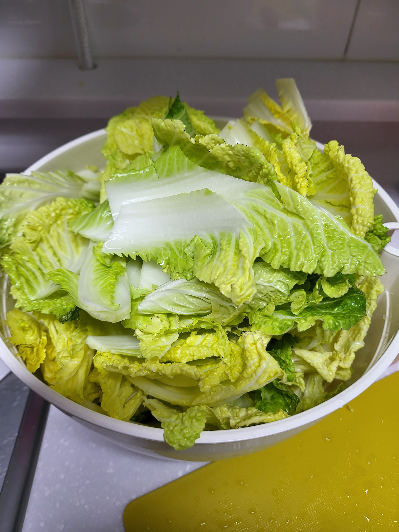 [알배추 된장국을 끓이기 위해 듬성듬성 잘라 둔 알배추]