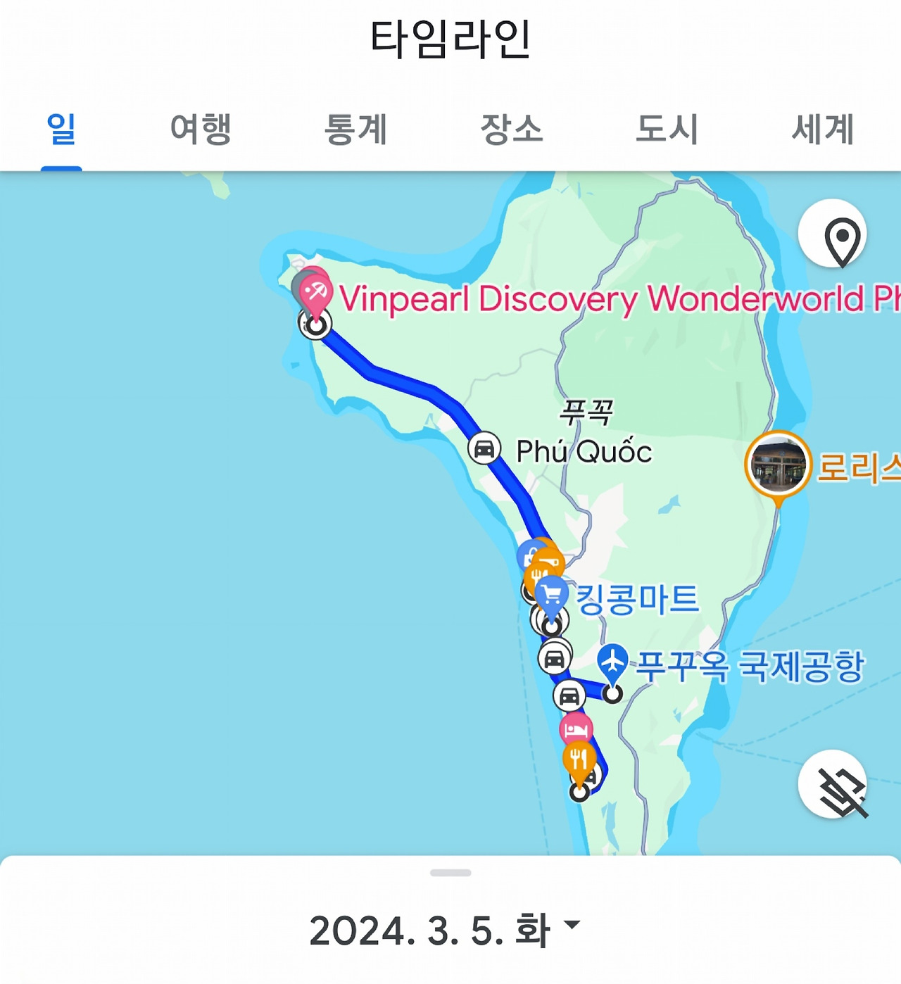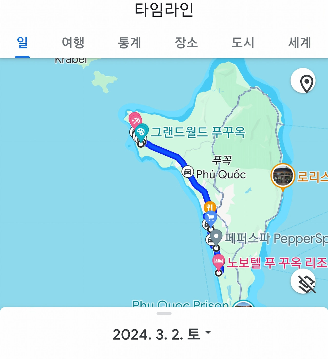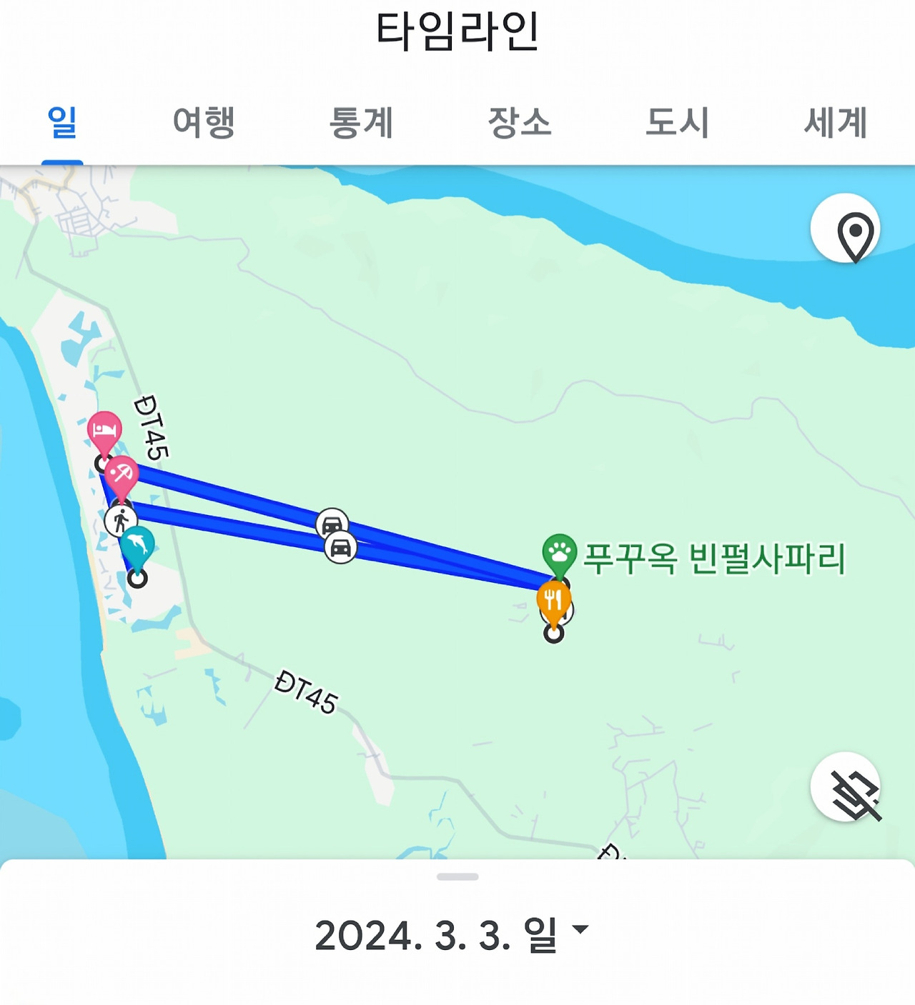 타임라인을 펼쳐놓으니 푸꾸옥에서, 첫날엔 페퍼 스파에 갔구나, 둘째 날에는 빈펄 사파리를 들렀구나, 그다음 날은 안터이항으로 스노클링을 하러 갔군, 마지막 날에는 킹콩마트에 가서 선물을 잔뜩 샀군, 등등 여행 일정을 새록새록 다 기억할 수 있었다.