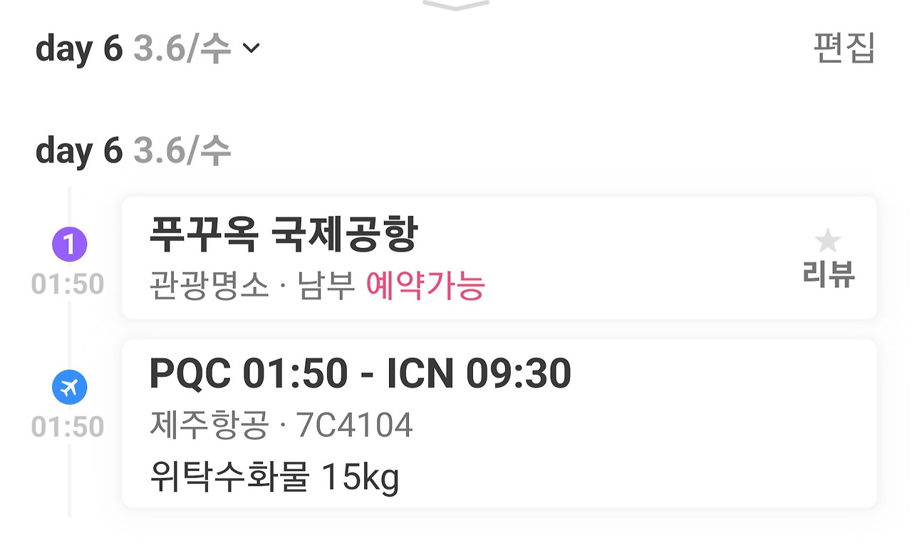 3월 2일부터 3월 5일까지 푸꾸옥에 머물렀고 3월 5일 밤 비행기로 돌아왔다. 한국에 도착했을 때는 3월 6일이었다.