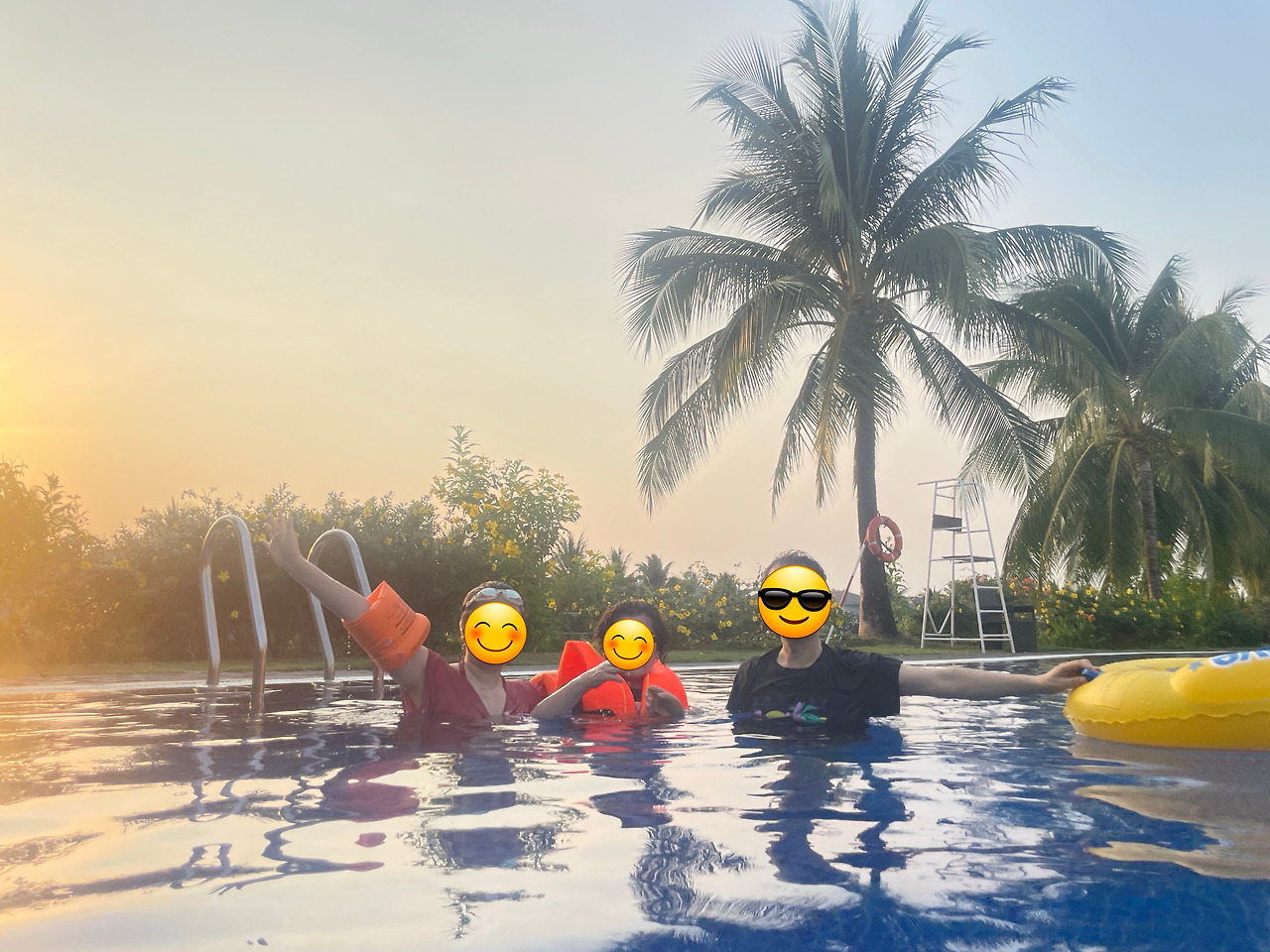 <모닝 투어>의 슈퍼카는 우리를 리조트까지 샌딩해 주고 떠났다. 참 편리했던 현지 패키지였다. 로비에서 객실을 안내받은 후에 리조트 전용 이동 수단인 '툭툭'을 타고 숙소로 갔다. 숙소에 개인 풀장이 버젓이 있었지만 야외 대형 수영장으로 고고씽 했다. 해먹 튜브와 팔 튜브를 챙겨갔다. 야외 수영장에서, 나는 스노클링 레슨을 받아야만 했다. 수영을 전혀 못하기 때문이었다.