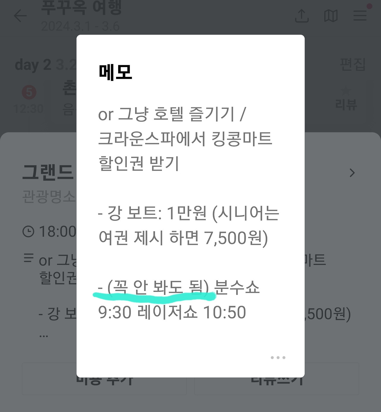 옵션으로 짜둔 일정이긴 했다. 그렇지만 '베트남의 베니스'라고 불리는 그랜드 월드에 가는 일정을 놓치고 싶지 않았다. 해외여행을 여러 군데 다녔지만 아직 유럽을 가보지 못했기 때문이었다. 미니어처 유럽 같은 그곳을 보고 싶었다. 결국 딸과 둘이서 가기로 했다. 쎈 언니들이었다. 우리는...