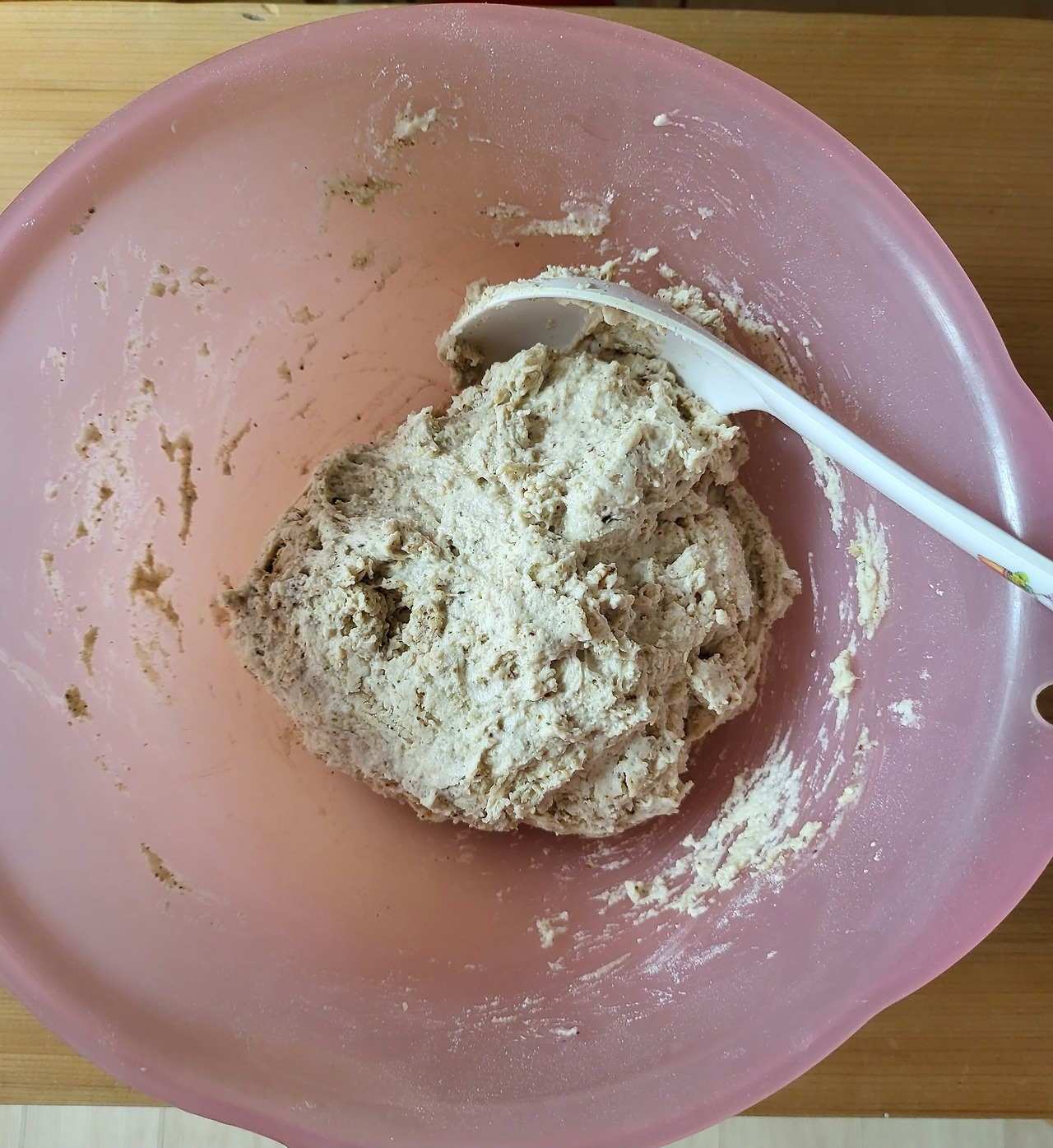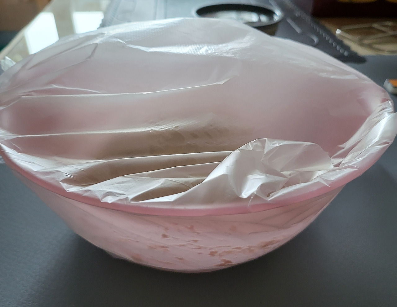 [대충 반죽을 한다. / 비닐로 밀봉하여 냉장 보관하여 숙성시킨다.]