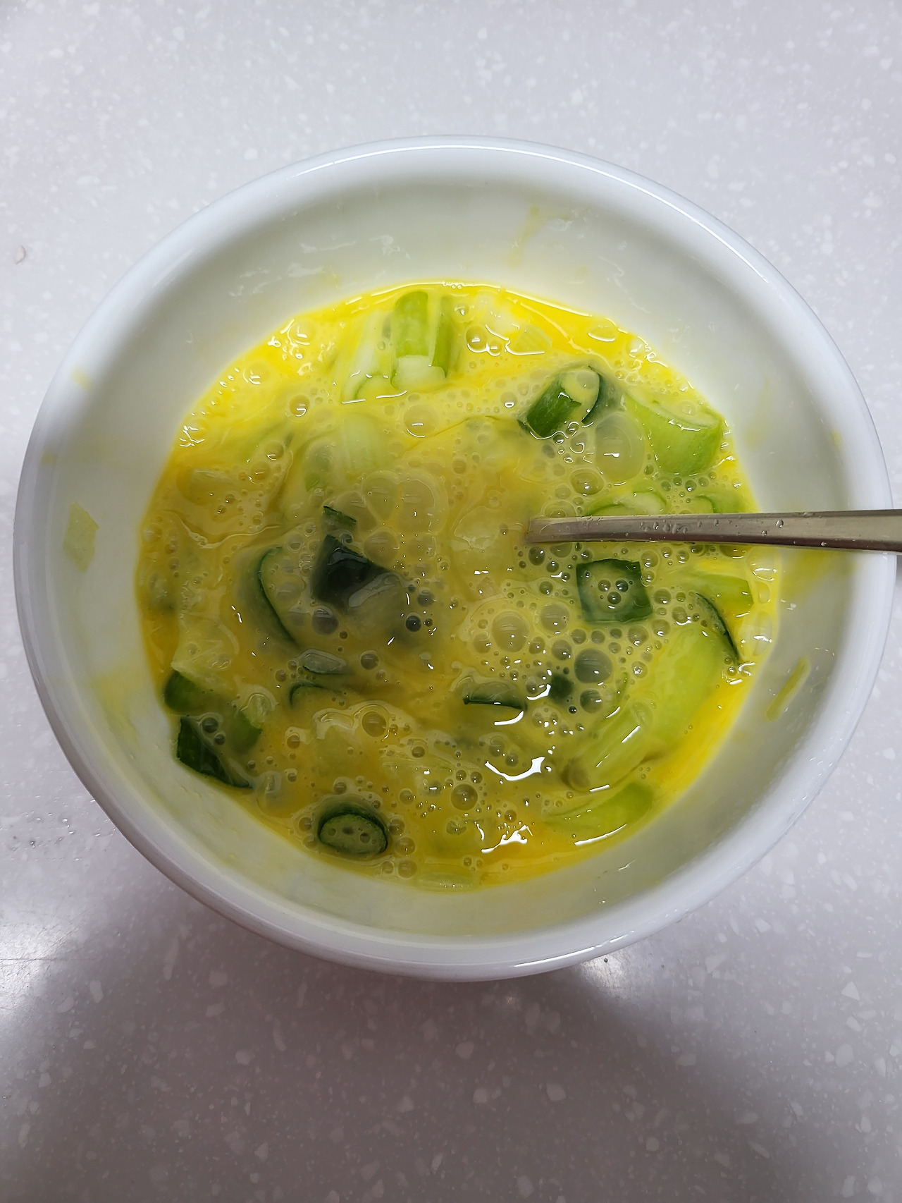 육수는 요즘 나오는 '황금비율 진한 육수 한 알'이란 것으로 했다. 간은 액젓으로 맞췄다. 파 송송 썬 것에 계란을 미리 풀어 두었다.