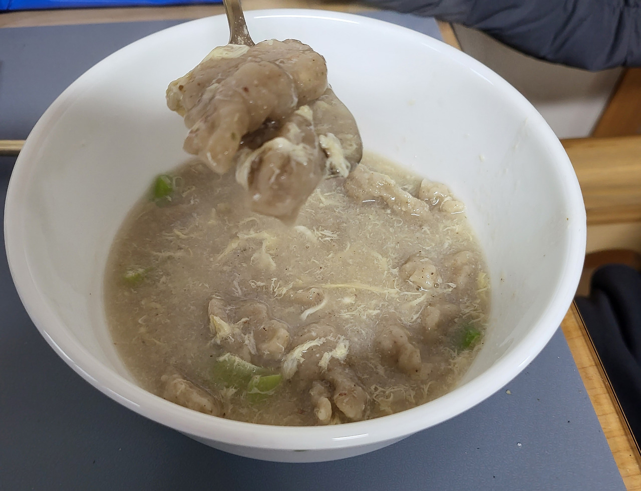 [웰빙 수제비, 모양은 기존의 것보다 투박해보이지만 맛있었다. 건강에도 좋다.]