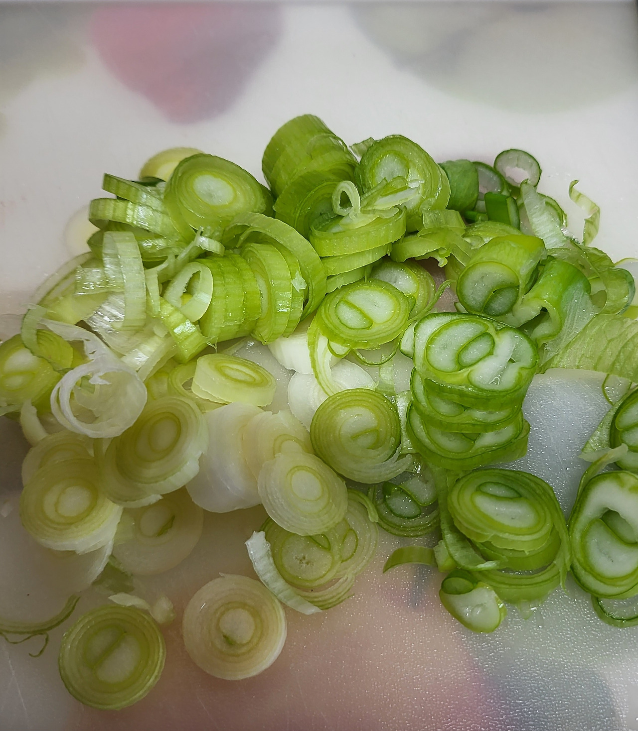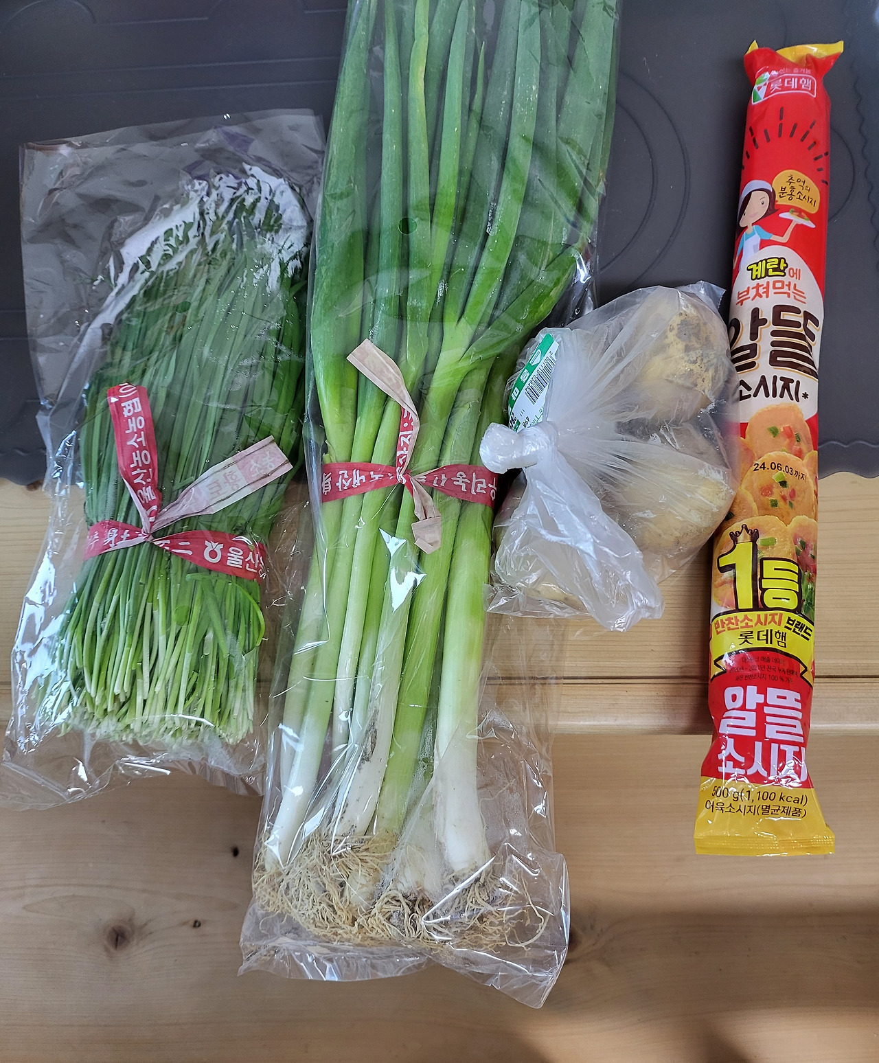 장을 봐 왔다. 아침부터 요리가 시작됐다. 내가 만들 요리는, 엉겁결에 3종류나 됐다. 오전 내내 해야 할 만큼의 일이 커졌다. 일어나자마자 부추김치에 넣을 누룽지 풀을 쑤어 두었다. 깐쪽파가 한 단에 17,000원인데 비해 대파 한 단은 단 돈 3,000원이었다. 싼 맛에 일단 샀다. 그런데 소시지전을 부치려고 레시피를 검색해 보니 소시지전에는 대파를 넣는단다. 그렇다면 대파를 산 것이 잘한 일이었다.