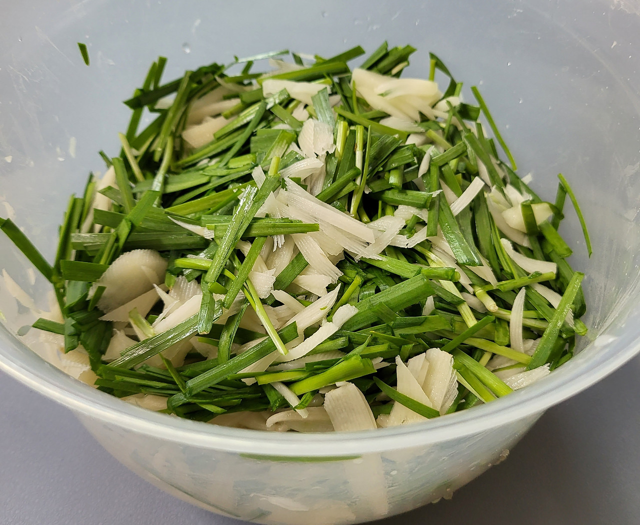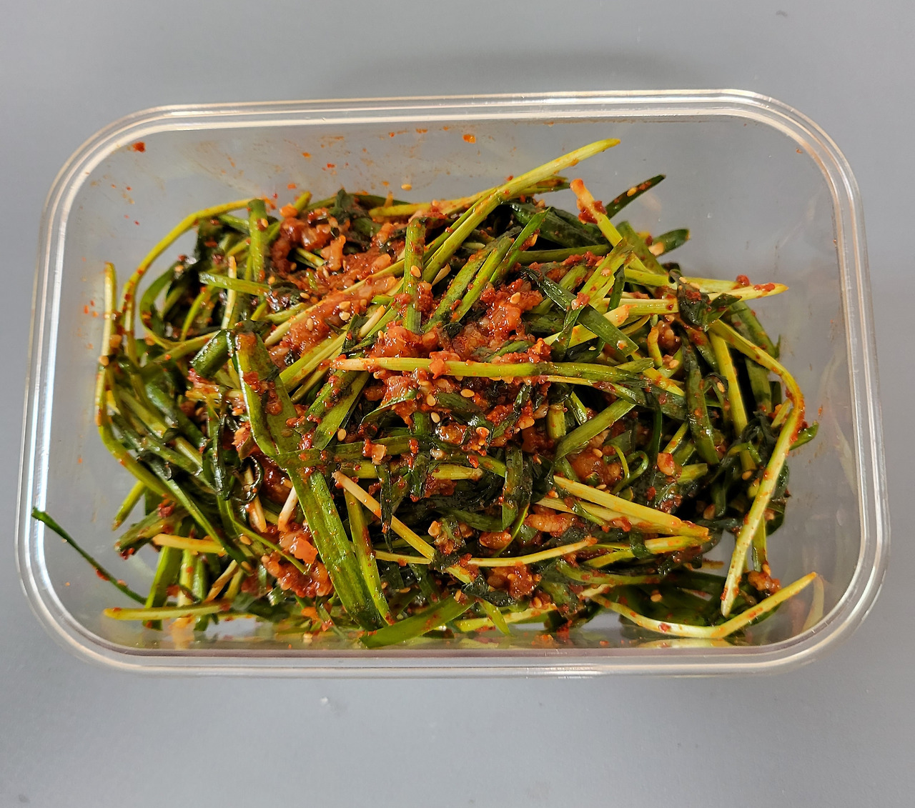 마지막으로 부추김치를 담갔다. 액젓으로 간해 둔 부추에서 국물을 따라냈다. 레시피대로 했더니 그냥 이게 바로 밥도둑이었다. 이 레시피에는 없었지만, 나는 미리 끓여두었던 누룽지 풀을 넣었다. 레시피 상으로 특이한 것은 꿀을 넣는다는 것이었다. 부추와 꿀이 잘 어울렸다. 부추김치가 이렇게 맛있다면 반칙이다. 왜냐하면 조리과정이 쉬어도 너무 쉽기 때문이다.