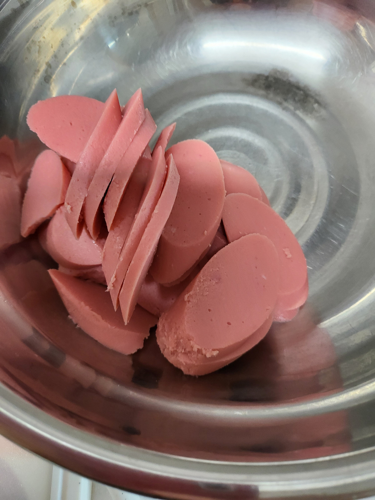 계란은 미리 넉넉하게 깨뜨렸다. 계란 껍데기에 살모넬라균이 있을 수도 있으니 미리 깨뜨려 놓은 후에 손을 깨끗이 씻고 요리를 시작할 요량이었다. 소시지는 어슷 썰기가 더 나을 것 같았다.