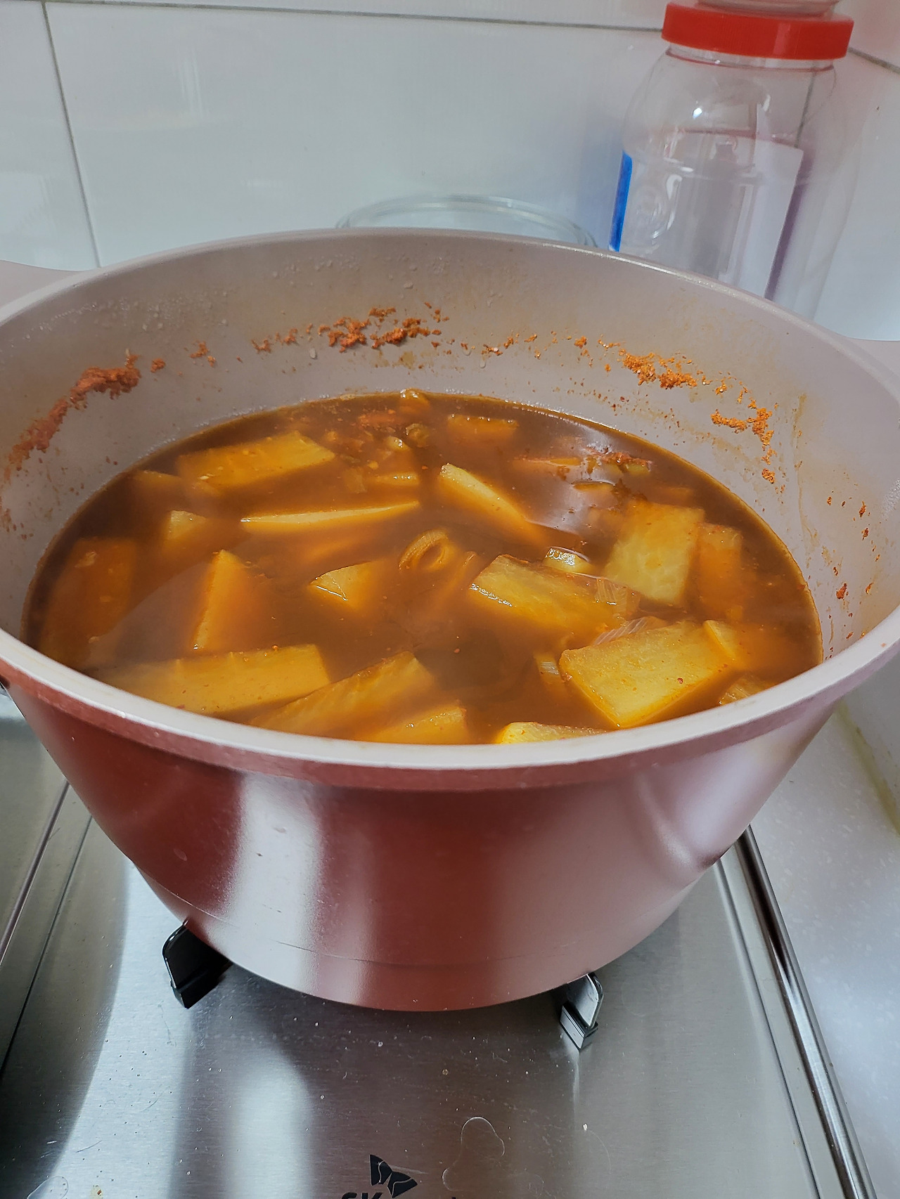 마트에 가서 소갈비 양념장으로 요리할 재료를 사 왔다. 무를 듬성듬성 썰어서 갖은양념을 한 후에 소갈비 양념장으로 무 조림을 했다. 검색해 본 레시피에 의하면 무 조림을 그냥 반찬으로 먹어도 되지만 그 무 조림에다 감자, 당면 등을 넣고 조려도 된다고 했다. 궁중 떡볶이도 만들 수 있단다. 마치 육수처럼 사용한다는 의미였다. 그래서 큰 무 하나로 만든 무 조림을 소분하여 따로 보관했다. 언제든지 그것으로 다른 요리를 만들면 된다. 당장, 오뎅 볶음을 했다. 집에서 오뎅 볶음을 해 본 기억이 가물가물하다.