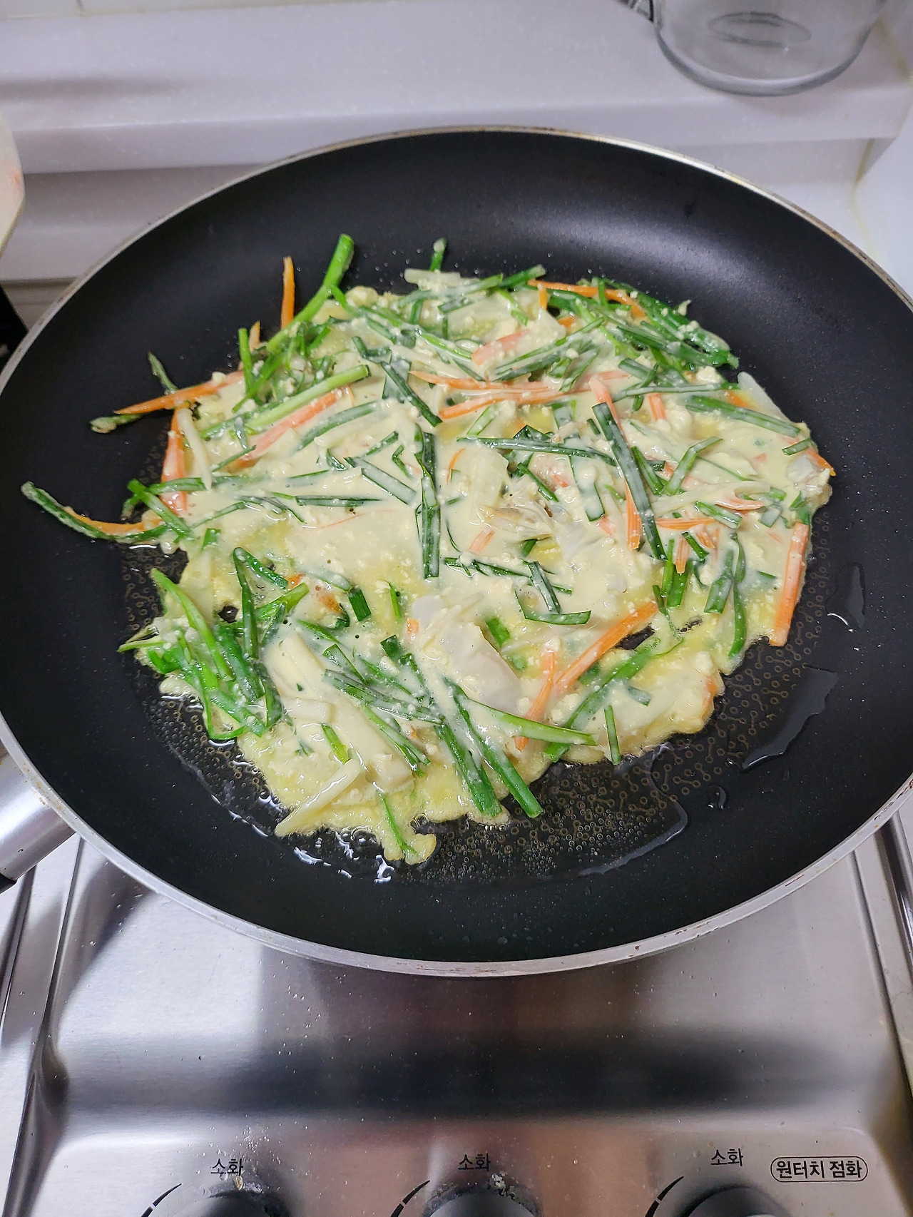 딸내미가, 곧바로 눈치챌 줄은 몰랐다. 매주 부쳐 보냈던 야채전과 좀 색다른 부침개였다.