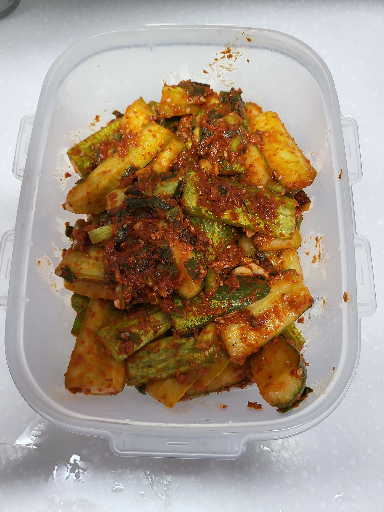 오이소박이보다 간단한 '오이김치'를 담갔다. 그동안은 오이를 소금으로 절였다가 물기를 짠 후에 버무리는 '오이 겉절이'를 주로 했었다. 그런데 오이를 끓는 물에 담가 두었다가 오이김치를 담그는 것이 오늘의 어나더 레시피다.
