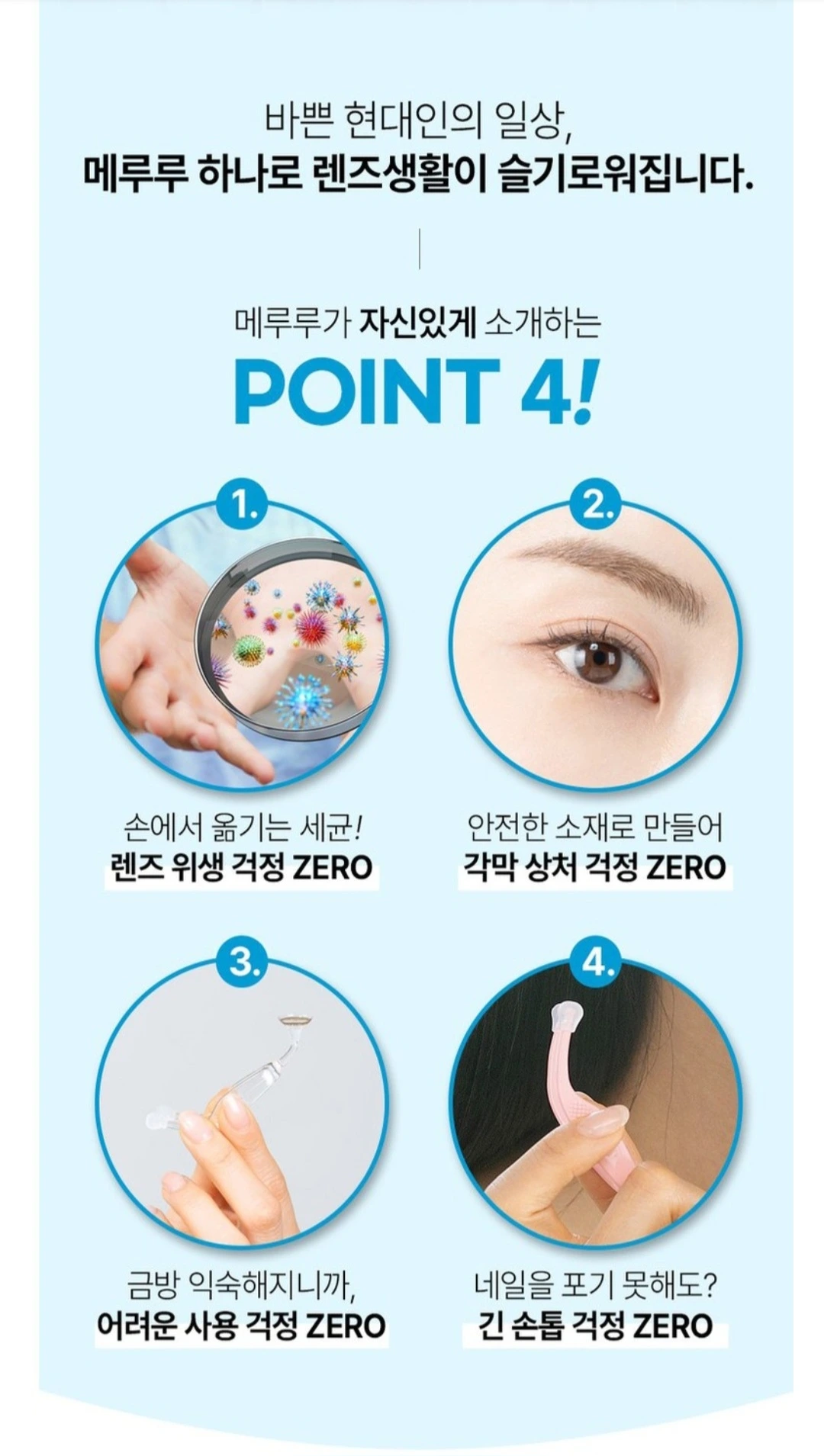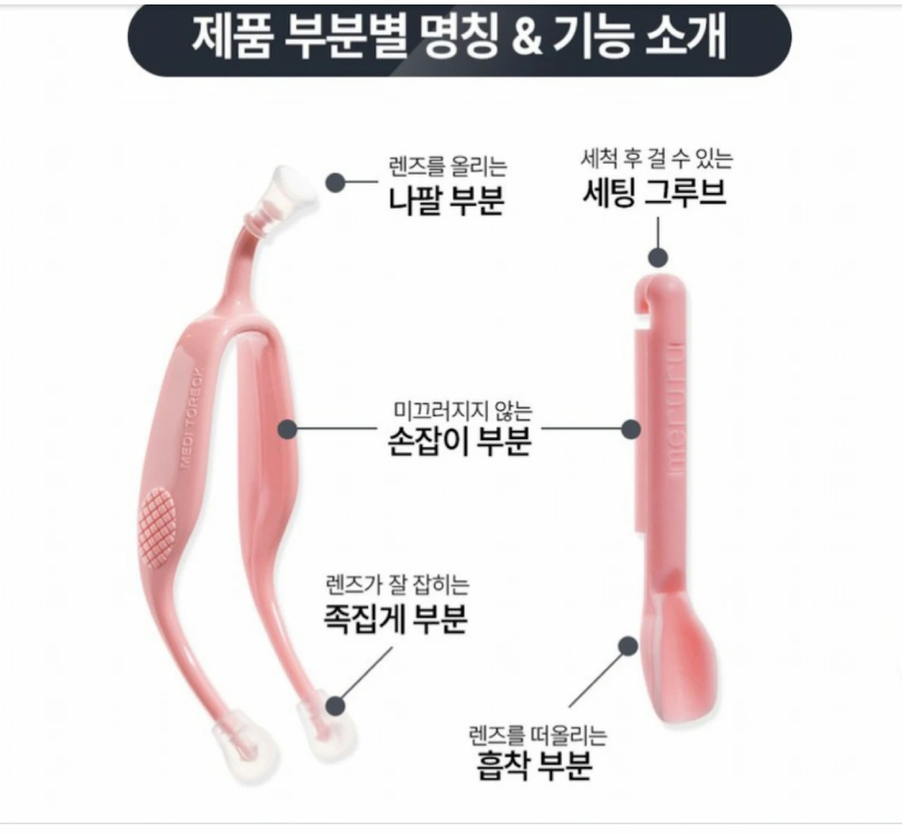 여러 가지 브랜드를 검색한 후에 맘에 드는 것을 골랐다. 뽁뽁이 흡착봉과 콘택트 족집게는 구원투수처럼 반가웠다. 바로 내가 그토록 힘들어했던 렌즈 빼는 일을 그냥 해낼 수 있는 찰나가 왔다. 우리에겐 신박한 도구인 셈이다.
