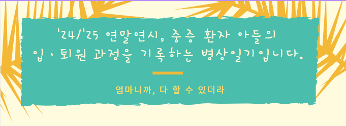 중증환자 아들이 '24년/'25년 연말연시에 입, 퇴원을 반복하여 독박 간병하느라 고군분투했던 이야기를 기록으로 남겨놓고 싶었습니다. 정주행 하며 함께 공감해 주신 분들께 감사드립니다.