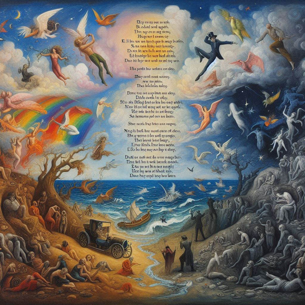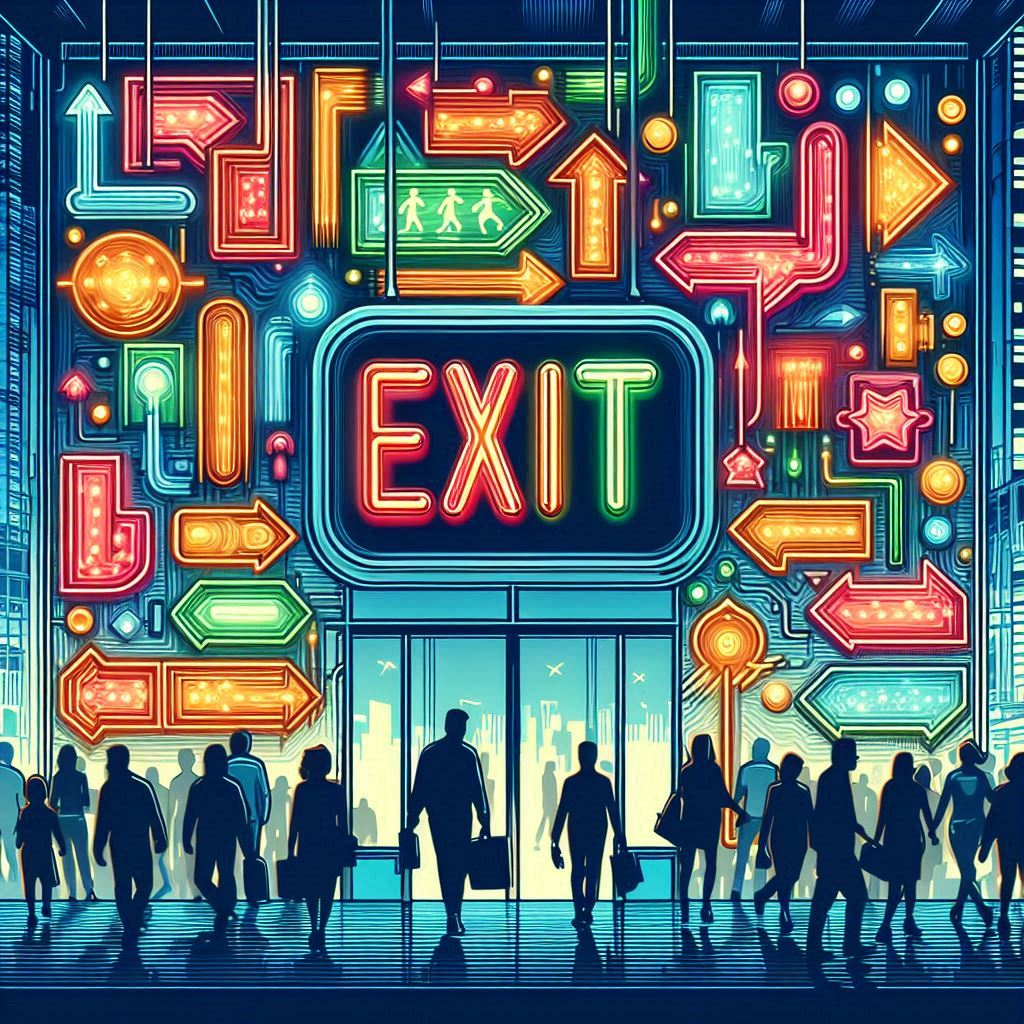 시화 제작이 불가능하다면 출구가 여럿 있는 이미지라도 얻고 싶었다. 그걸 요구했더니 AI는 4번 그림을 내밀었다. 이해할 수 없는 그림이었다. 음, 그러면, EXIT라는 표시가 있는 이미지가 나을 것 같았다. 그 결과로 5번 그림이 나왔다. AI가 AI 했다. 아무짝에도 쓸모없는 그림이 나왔다. 그럴싸한 이미지를 찾으면 거기에 '출구(出口)'라는 시 전문을 텍스트로 입력할 요량이었다. 시화를 AI가 만들어 낼 것이라는 희망은 아예 포기했다. 시에 어울리는 그림이라도 하나 그려달라 했더니 6번 그림이 나왔다. 그 시에 끄트머리에 '희망'이란 단어가 있으니 6번과 같은 그림이 나온 모양이다. 내게 무용지물인 그림이다. AI를 믿고 무슨 일을 하겠는가? 'AI와 협업하여 시화 만들어 보기' 프로젝트는 애당초 글러먹었다.