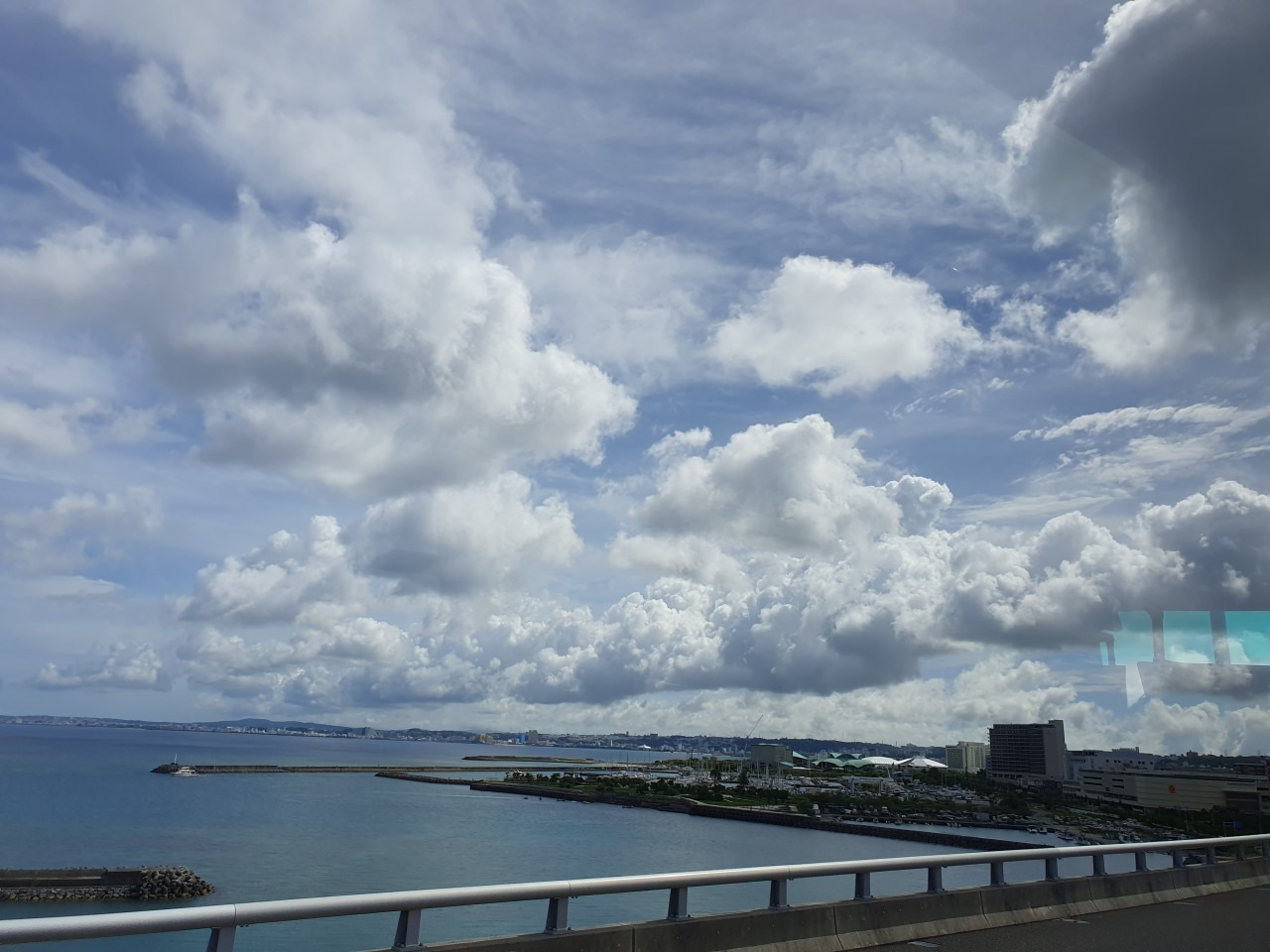 나하 공항에 도착하니 파란 하늘이 눈에 확 들어왔다. 그 하늘에 입혀진 구름이 정겹게 보였다. 구름을 보니 감탄사가 절로 나왔다. 오키나와 하면 부드럽게 펼쳐진 흰 솜사탕 같은 아름다운 구름이 먼저 떠오를 것 같다. 어쩌면 한국의 하늘에도 새하얗고 몽실몽실하게 하늘을 수놓은 구름이 있었을 것이다. '일상을 떠나면 비로소 보인다'라는 말이 있다. 내게 먼저 보인 것은 구름이었다.