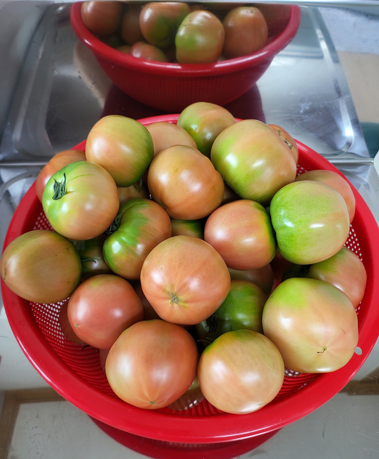 아무튼 그렇게 토마토를 샀었다. 사실, 로켓프레시를 이용하면 당일에, 혹은 이튿날 새벽에 신선한 과일을 받을 수 있다. 게다가 30년 넘게 이용하는 단골 과일가게가 있어 전화만 하면 곧바로 배달이 온다. 요즘 잘 나가는 과일, 제일 맛있는 과일을 달라고 하면 그냥 과일가게 주인장이 알아서 챙겨 온다. 그래서 과일을 굳이 사서 내 손으로 들고 올 일이 없었다. 더군다나 산책길에서 토마토를 산 건 처음이다. 눈으로 보기만 해도 싱싱하고 맛있어 보이는 토마토였다. 수돗물에 잠깐 담가 두었다가 식초물로 소독하여 잘 씻었다.