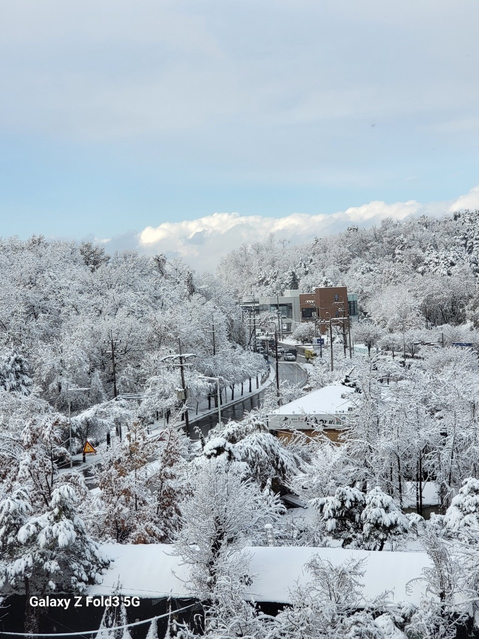 이번에는 디테일이 요구되는 사진을 제공해 보았다. 지난해 겨울, 폭설이 내렸을 때 뒷베란다에서 찍은 것이다. 이걸 과연 그려낼 수 있으려나 하는 맘으로 어반 스케치를 그려달라고 요청했다.