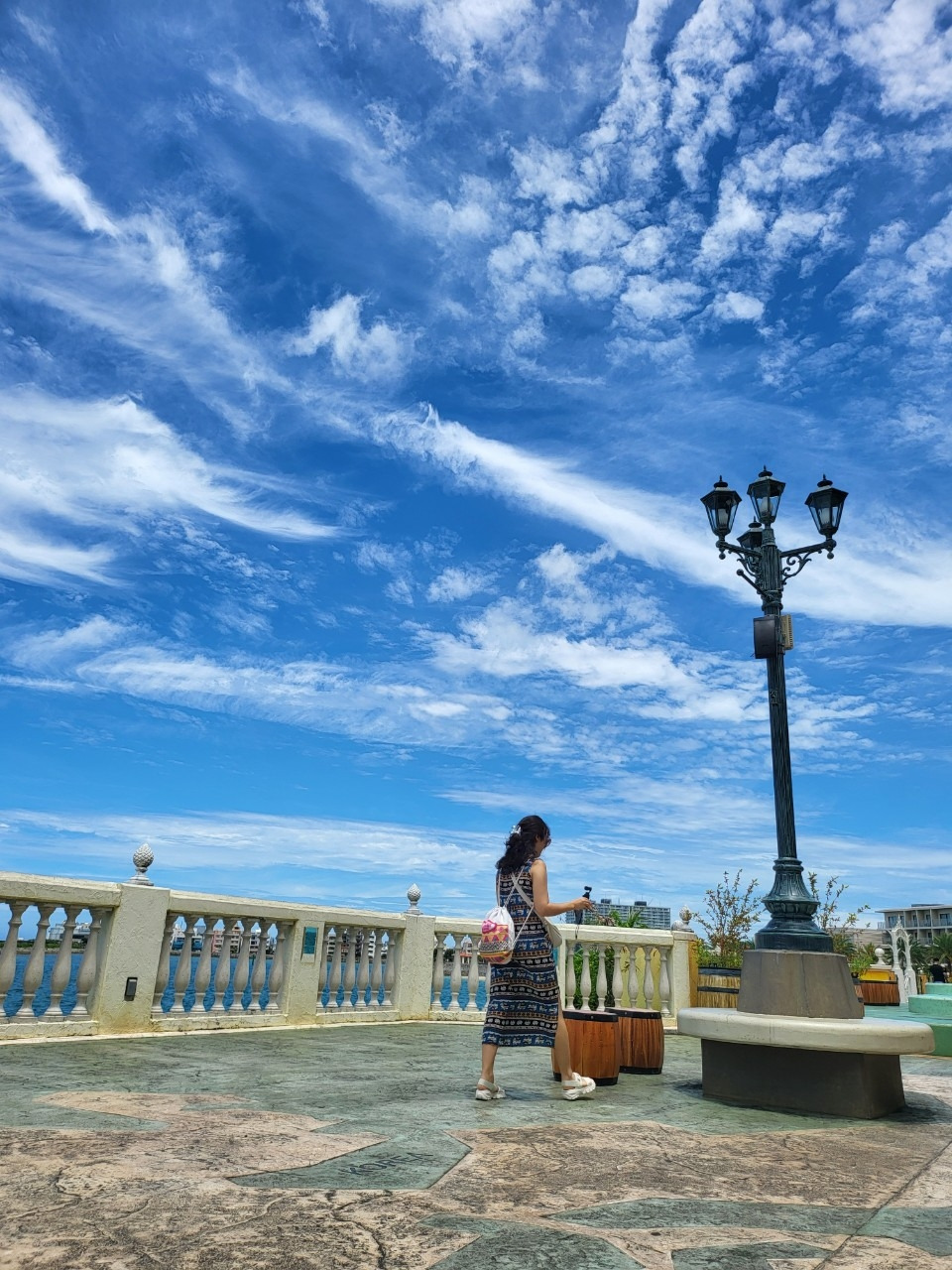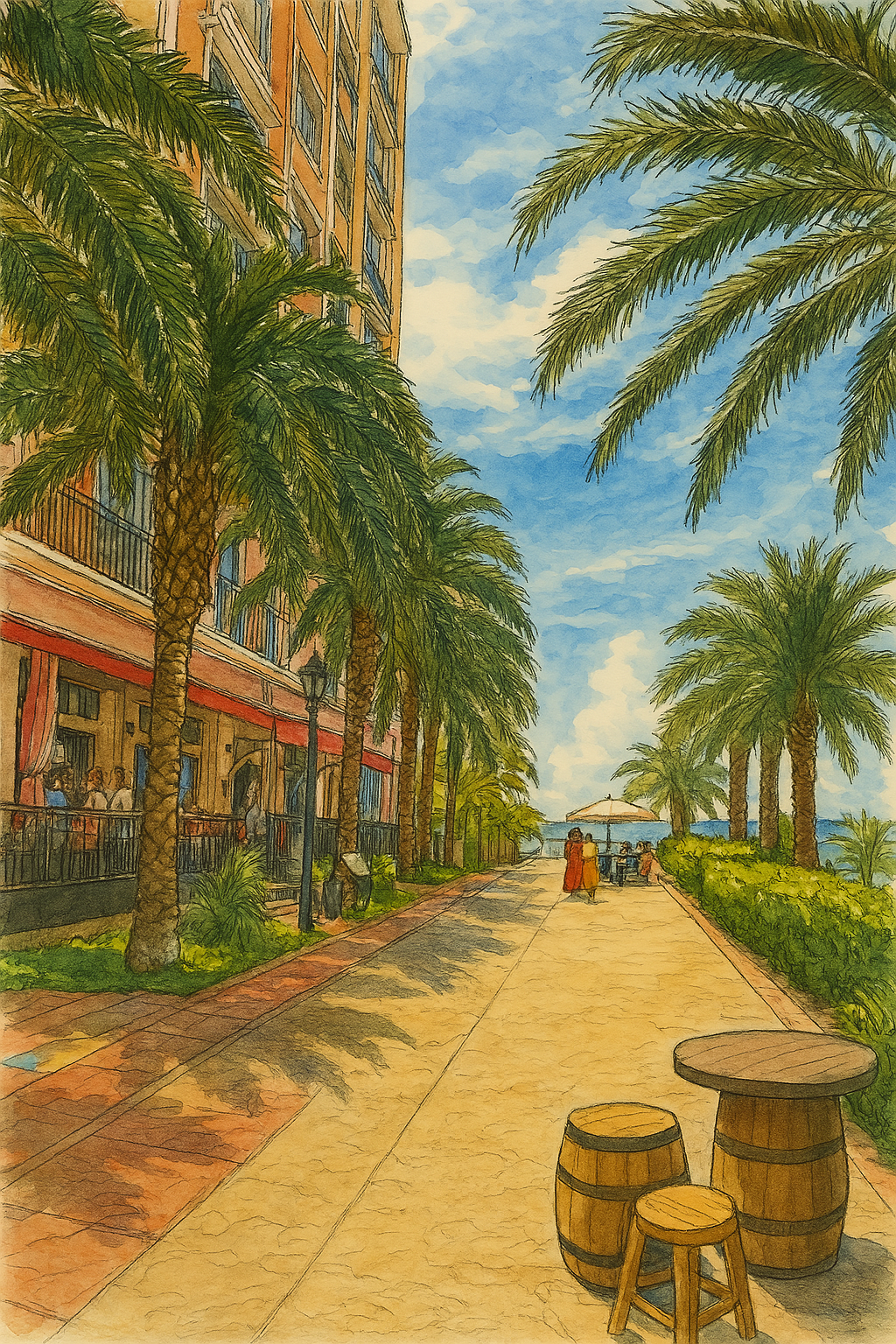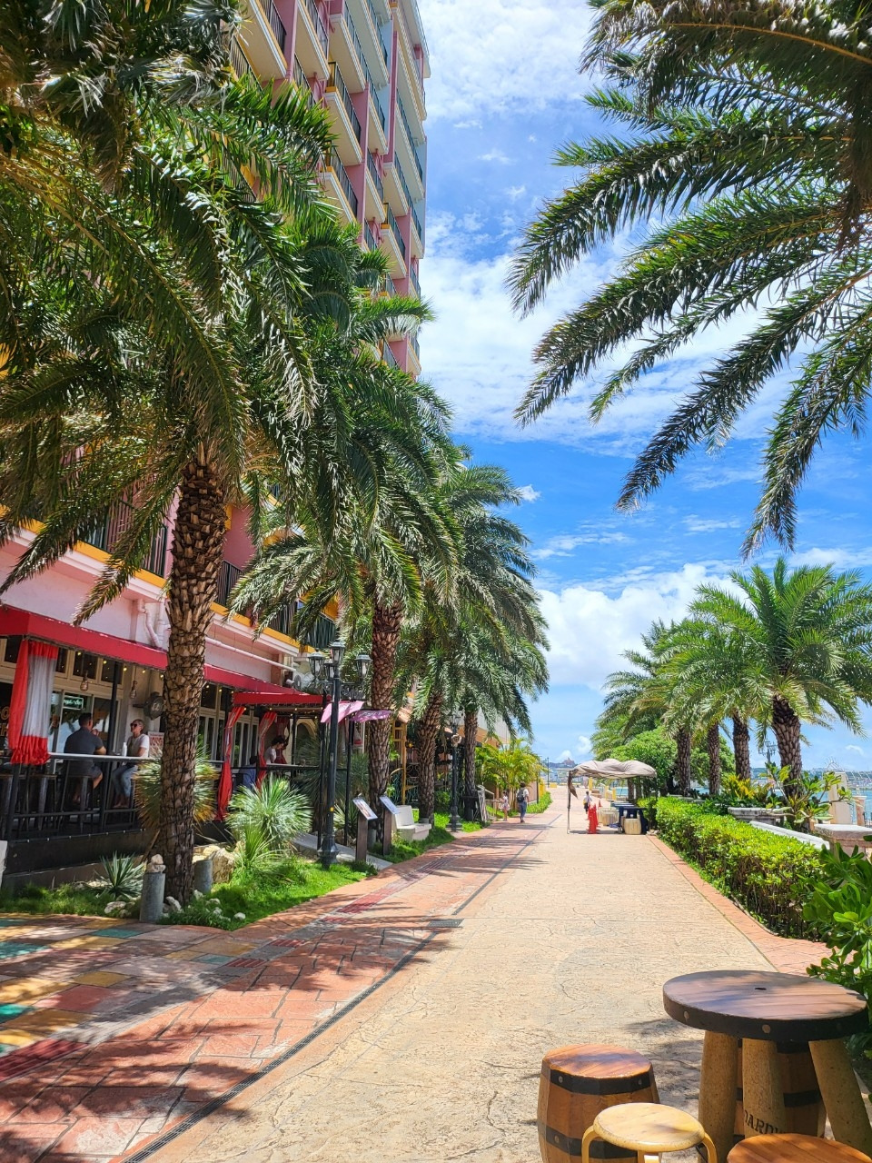 맘 같아서는 길 방향이 사진과 좀 다르다고 하며 다시 그려달라고 하고 싶었지만 참았다. 인물보다는 풍경으로 어반 스케치로 구현하는 게 퀄리티가 나은 것 같다. 그래서 오키나와 '아메리칸 빌리지'에서 찍은 사진 하나를 내밀며 작업을 부탁했다.