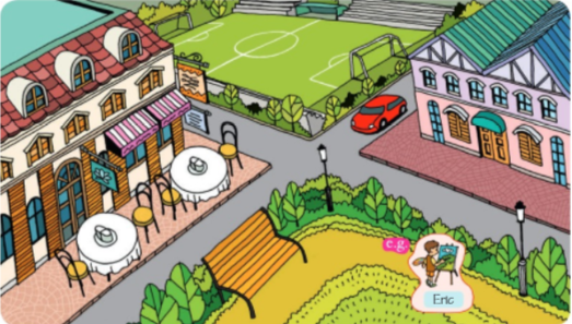 재미있는 에피소드 하나를 소개해본다. 교과서에 있는 그림지도를 보고 사람을 셋 정도 그려 넣고 그 사람이 무엇을 하고 있는 중이라고 영어로 표현해보는 활동이었다. 한 학생이 그림에 있는 세 사람의 이름을 각각 Park / Ye / Chan이라고 적어둔 게 아닌가? 기발한 발상이다.