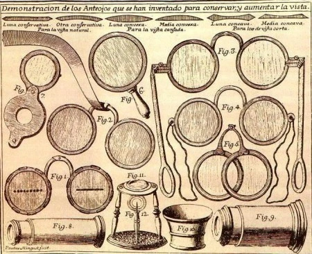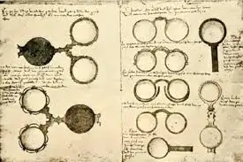광학적인 기능이 언급된 건 1268년 영국의 철학자 로저 베이컨이 렌즈를 사용했다는 것과 마르코 폴로의 동방견문록(1271년 ~ 1295년)에서 원나라 신하들이 대모갑으로 만든 볼록한 렌즈를 끼고 있다. 기록입니다. 이 역시 누굴 봤더니 이랬더라~ 저랬더라~ 라는 카더라 형식의 기록이지 안경 자체 본질로서 기록은 아닙니다.