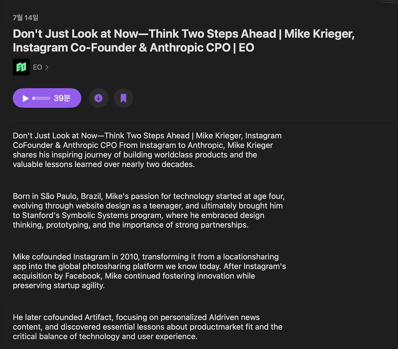 Don't Just Look at Now—Think Two Steps Ahead. 인스타그램 공동창업자 Mike Krieger의 팟캐스트 인터뷰 내용이다.