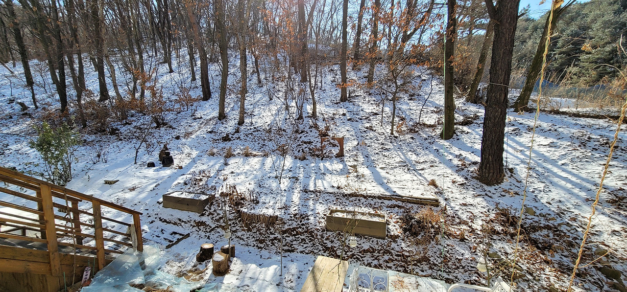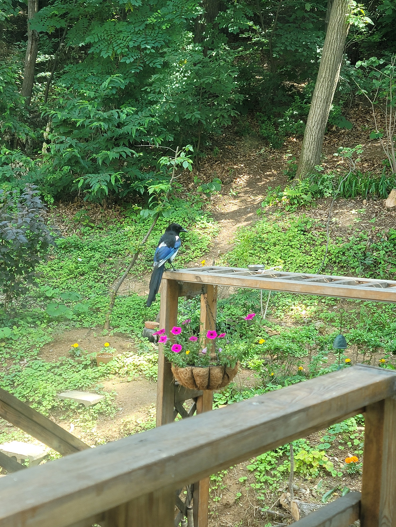 집 마당에는 고라니부터 들고양이, 까치, 물까치, 박새, 딱새, 직박구리, 딱따구리... 에 이르는 많은 동물들이 내려온다. 그들은 마당에 뿌려 둔 밤 도토리와 물을 먹고 목욕을 하고 배설한다. 그 배설물들은 빗물에 녹아 식물에게는 훌륭한 영양제가 된다. 아주 느린 순환이지만 주택에 몇 년 살다 보면 그 느린 움직임이 눈에 들어오기 시작한다.