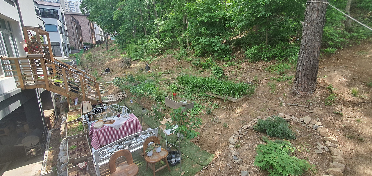 집은 부동산이라고 한다. 움직이지 않는 재산. 내가 집을 짓고 4년을 살아 보니 집을 부동산이라고 하기엔 변수가 있다. 대부분의 주택은 아파트와 달리 개인 정원이 있다. 이 부분이 부동산인 주택의 변수이다. 사람이 집을 짓고 살지만 집은 사람을 짓는다. 집을 가꾸며 마당을 정원을 가꾸며 나는 점점 사람이 되어 가고 있다. 자주 짓는 표정에 따라 얼굴 주름살이 다르게 잡히는 것처럼 집도 사는 사람이 어떻게 가꾸느냐에 따라 계속 달라지고 성장한다. 자연과 함께 자연과 가까이 살고자 해서 아파트가 아닌 주택살이를 선택했지만 되도록 자연에 해를 끼치고 싶지 않은 마음에 경치 좋은 전원의 한가운데가 아닌 아파트 근처에 조성된 주택단지의 땅을 구입했다. 마당에는 되도록 꽃과 나무를 심었다. 상추 고추 깻잎 오이 당귀 머위대를 심은 텃밭은 플랜트박스를 따로 만들어 테라스에 두었다. 드물지만 지나다니는 등산객들이 나와 함께 꽃을 보고 즐기기를 바라는 마음에서였다. 머우대와 당귀 특히 돼지감자 호박 같은 작물들은 줄기와 뿌리가 마구 뻗어 나가 밭이나 산을 망치는 경우가 있기 때문이다.