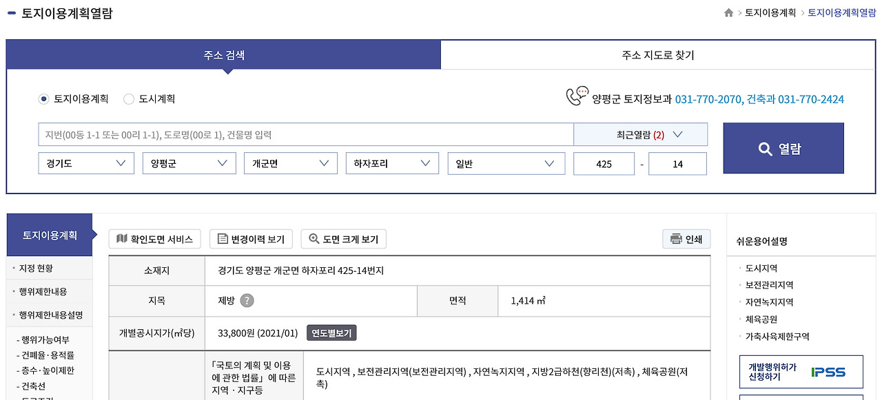 맘에 드는 땅을 발견했다면 토지이용계획을 알 수 있는 토지 e음 사이트에서 주소를 입력하고 토지의 용도를 확인해야 한다. 공시지가도 알 수 있고 토지의 용도를 구체적으로 알 수 있다. 시청이나 구청의 담당 부서 전화번호도 기재되어 있으니 세부적인 사항은 전화해서 확인하는 것이 좋다. 중개인의 설명만을 듣고 급한 마음에 계약서에 사인을 하는 실수를 해서는 안된다. 나도 경험한 일이지만 토지 중개인은 “오늘 오후에 이 땅이 계약이 될 것 같아요. 아주 맘에 들어하시는 분이 오후에 계약하기로 했는데 먼저 사인하는 사람이 임자겠지요? 꼭 이 땅을 사고 싶으시면 얼마라도 비용을 걸어 놓으시는 게 안전합니다.”