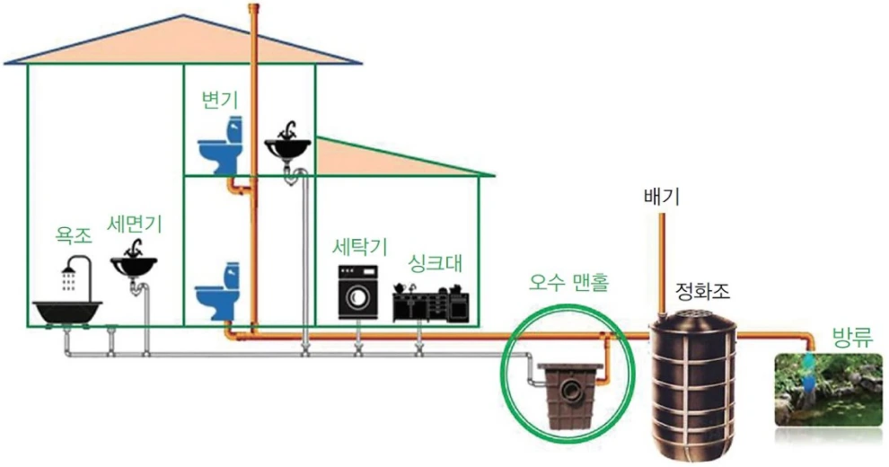 오폐수직관이라는 말은 들어본 적이 없는 사람도 많을 것이다. 나는 집을 지으려고 마음을 먹었을 당시 콘센트와 스위치도 구분 못하는 건축에 대해 정말 무지한 상태였다. 집을 지어가면서 매일 낮에는 공사장에서 사진 찍고 공사 과정을 지켜봤다. 밤에는 낮에 찍은 사진들을 보면서 관련 자료를 찾고 시공사 대표님에게 폭풍 질문을 하면서 지냈다. 시공사 대표님은 내가 매일 공사장에 나타나는 것을 불편해하셨다. 설계 미팅할 때만 해도 매일 나가겠다는 나의 말에 언제든 환영한다고 말씀하셨다. 그렇지만 진짜 매일 나타날 줄은 모르셨던 것 같다. 오폐수직관이라는 것은 공공폐수처리시설로 오수를 바로 유입시켜 버리는 경우를 말한다. 대부분의 도시 주택에서는 도시가스관과 마찬가지로 오폐수관이 폐수처리시설로 바로 연결되어 있다. 따라서 별도의 정화조가 필요 없다. 이와 반대로 오폐수관이 연결되어 있지 많은 지역에서는 집집마다 개인 정화조를 설치해야 한다. 나는 정화조를 분뇨를 모아 놓는 거대한 탱크로 생각했는데 그것보다는 조금 복잡했다. 정화조는 내부에서 분뇨를 생화학적 과정을 거쳐 슬러지 형태로 침전시키고 그 외의 오수만 하수도를 통해 배출하는 시설이다. 가라앉은 침적물은 혐기성 균의 작용으로 분해된다. 처리가 완료된 침적물인 슬러지가 너무 많이 쌓이면 정상적인 분해가 일어나기 힘들기 때문에 1년에 한 번 분뇨 수거차가 슬러지를 펌프질 해서 분뇨처리장으로 수거해 간다. 그러고 보니 언젠가부터 분뇨차를 본 기억이 거의 없다. 어린 시절엔 학교 가는 이른 시각 분뇨차를 일주일에 한 번씩은 만났던 기억이 나는데 말이다. 옛날 집들은 화장실이 대부분 밖에 있었고 분뇨차는 화장실 분뇨를 긴 파이프를 이용해 수거해 갔다. 분뇨차 근처만 가도 나는 엄청난 냄새 때문에 코를 틀어막고 인상을 한껏 쓰면서 작업하는 아저씨들 옆을 지나갔던 기억이 난다. 지금 생각해 보니 참 죄송한 마음이 든다. 어느 순간부터 분뇨차를 보기 힘들어졌는데 그 이유가 오폐수직관 때문이라는 걸 알게 되었다. 내가 지방을 떠나 도시에 살게 되면서 분뇨차를 볼 수 없었던 것이다.