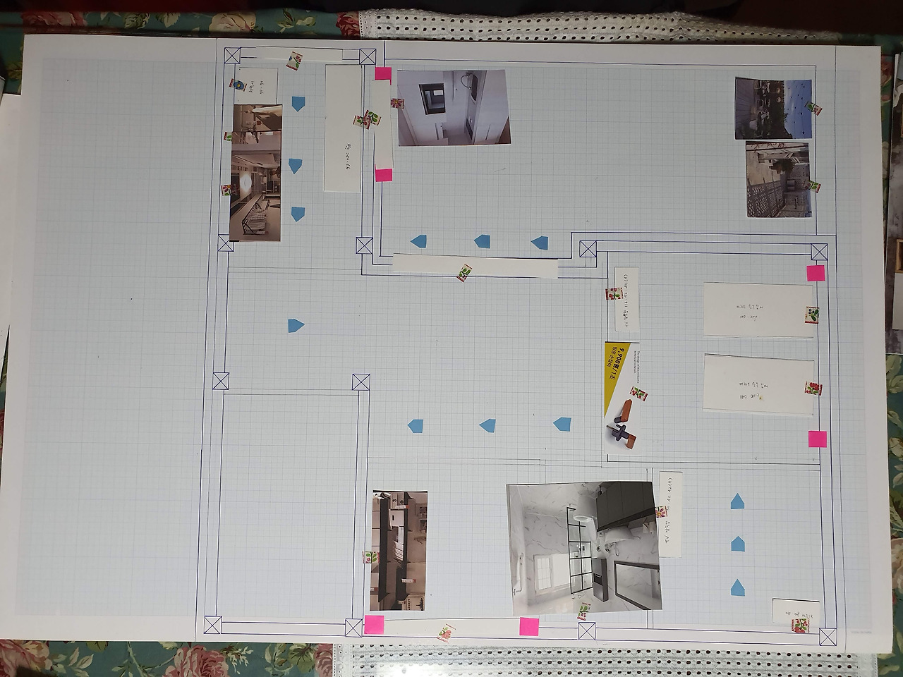 집 설계할 때부터 전기차 충전기 배관을 따로 빼 두어야 함. 전기차 충전용 전기료는 일반 가정용 전기료와 별도로 고지됨. 1층엔 주차장과 계단실 5평 공간이 전부이고 2층부터가 주로 사용하는 공간이다. 2층에는 주방과 거실을 넣었다. 서양식으로 신발을 신고 다니는 공간으로 설계했다. 신발을 신고 다니는 공간으로 사용하고 싶어서 주방가구와 세면대 높이를 일반 아파트보다 5cm 높이기로 했다. 일반적으로 가구는 휴먼스케일이라고 하는 기준에 의해서 만들어진다. 레오나르도 다빈치는 인체에 적용되는 비례의 규칙을 신전건축에 사용해야 한다는 로마의 건축가 비트루비우스의 저서를 읽고 인체비례도를 소묘로 남겼고, 휴먼스케일은 르코르뷔지에가 가장 처음 사용하기 시작한 개념이다. 인간 척도는 신체의 감각이나 움직임, 체격을 기준으로 한 공간이나 물체의 크기를 말한다. 르꼬르뷔지에는 183cm 정도 되는 성인을 건축의 척도로 삼는 모듈을 고안해 실제 건축에 적용했다. 우리는 옷을 구입할 때 허리사이즈 바지길이 팔길이 등을 생각해서 입어 보고 피부색과 맞는지도 세심하게 살펴본다.