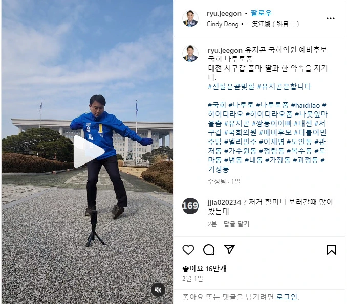정치인 릴스의 나쁜 예 <둘> - 조회수 잘 나온 것만 반복해서 찍어 올린다