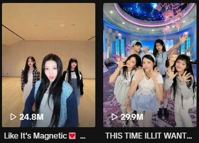 크리에이터가 띄운 잘자요 아가씨나 농협은행과 달리, 해외 확산에 성공한 마그네틱, 룩앳미, 첫사랑은 모두 아이돌이 시작한 케이스다. 특히 트와이스의 룩앳미는 최신 발매 음원이 아닌 역주행 곡인데, 이것이 글로벌 흐름을 타면서 투어스의 국내 화제성을 압도하는 등 영상 건수에서 거뜬히 뛰어넘어 버렸다.