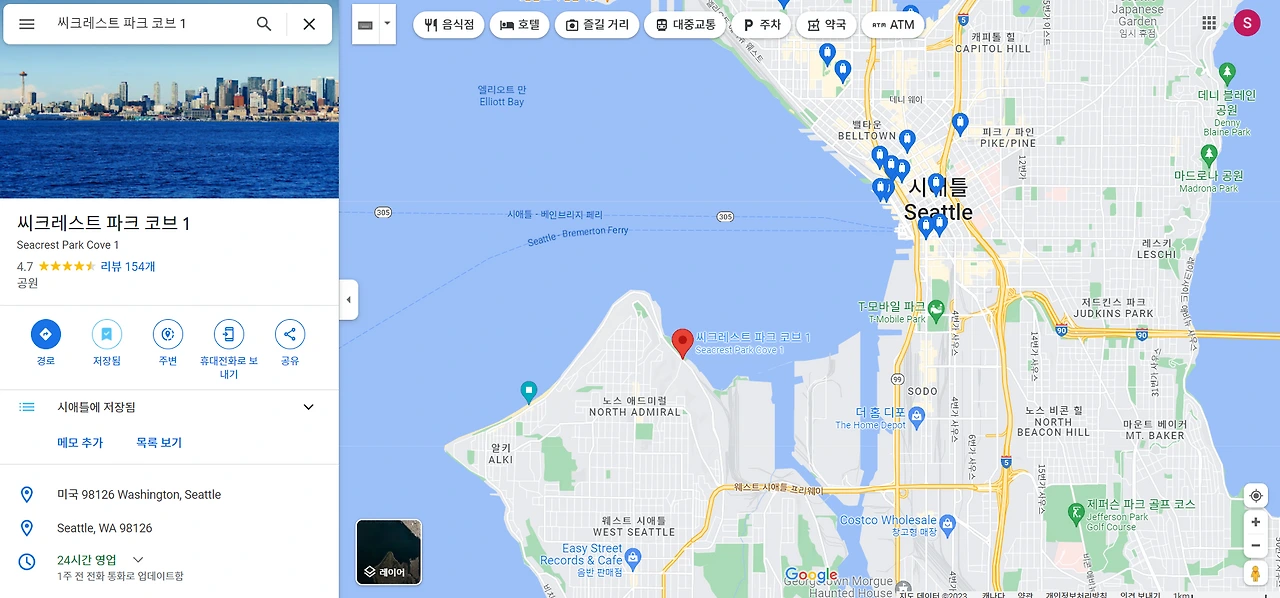 시애틀 여행의 국룰이 파이크 플레이스 마켓의 북적임이라면, 그 북적임을 잠시 벗어나 도시의 진짜 실루엣을 감상하는 건 여행자의 특권이다. 오늘은 시애틀 도심의 스카이라인을 한눈에 담을 수 있는 나만 알고 싶은 장소, 씨크레스트 파크 코브로 향했다.