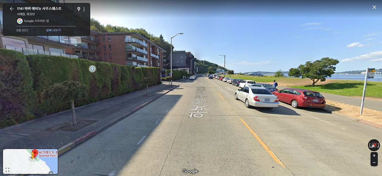시애틀 도로의 매콤한 맛 구글 지도상으로는 마켓에서 고작 15분 거리라는데, 시애틀의 악명 높은 교통체증과 공사 구간은 나에게 10분의 시간을 기꺼이 더 요구했다. 다리를 건너자마자 펼쳐지는 울퉁불퉁한 도로와 공사 현장들을 마주하며 '여기가 맞나?' 싶을 때쯤, 마법처럼 평온한 바다 너머의 풍경이 나타난다.