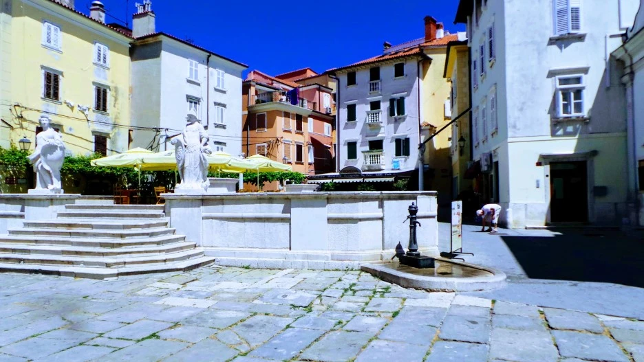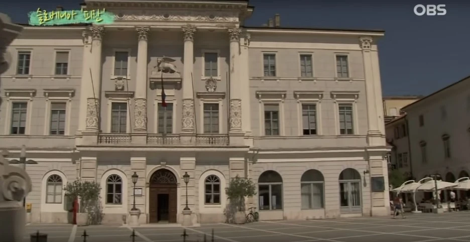 Občina Piran 구청 동상앞에 있는 동상은 주세페 타라티니 바이올린 연주자 피란에서 아주 유명한 위인으로 광장이름도 그를 기념하기 위한것이다.